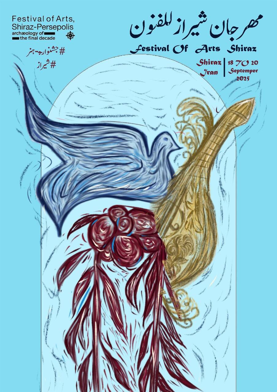 This poster was created as an artistic interpretation of the Shiraz Festival of Arts, inspired by the fusion of Persian cultural heritage and modern expressive illustration.