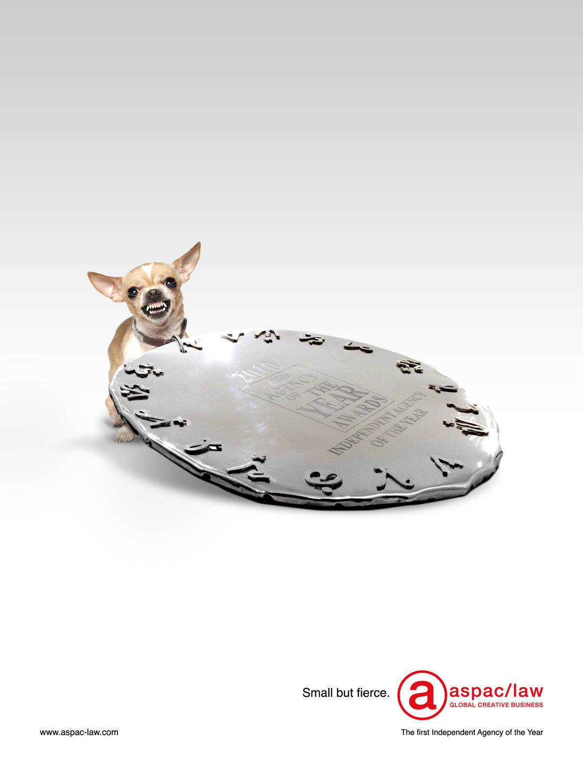 This professional campaign titled 'Fierce Chihuahua' was published in Philippines in November, 2011. It was created for the brand: Aspac-Law, by ad agency: Aspac-Law. This Print medium campaign is related to the Agency Self-Promo industry and contains 1 media asset. It was submitted about 14 years ago.