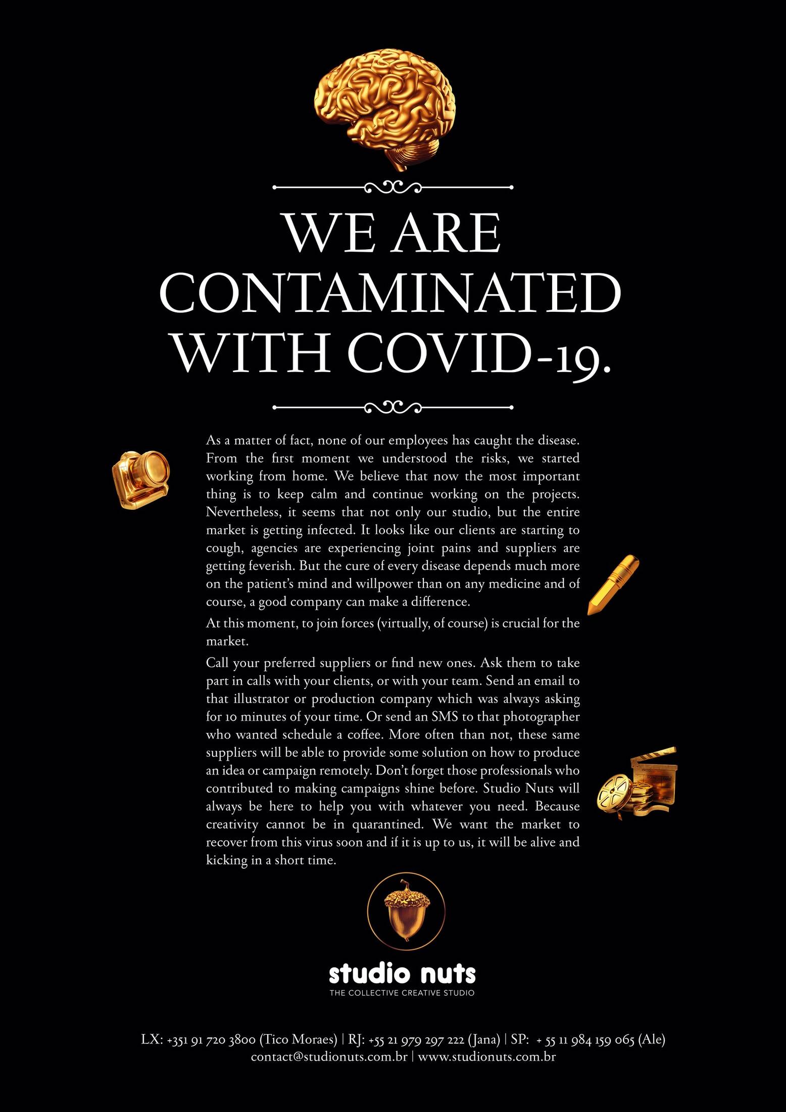 This professional campaign titled 'Fight against Covid-19' was published in Portugal in March, 2020. It was created for the brand: Studio Nuts, by ad agency: Studio Nuts. This Print medium campaign is related to the Agency Self-Promo and Public Interest industries and contains 1 media asset. It was submitted over 5 years ago by Creative Director: Tico Moraes of Nuts Studio.