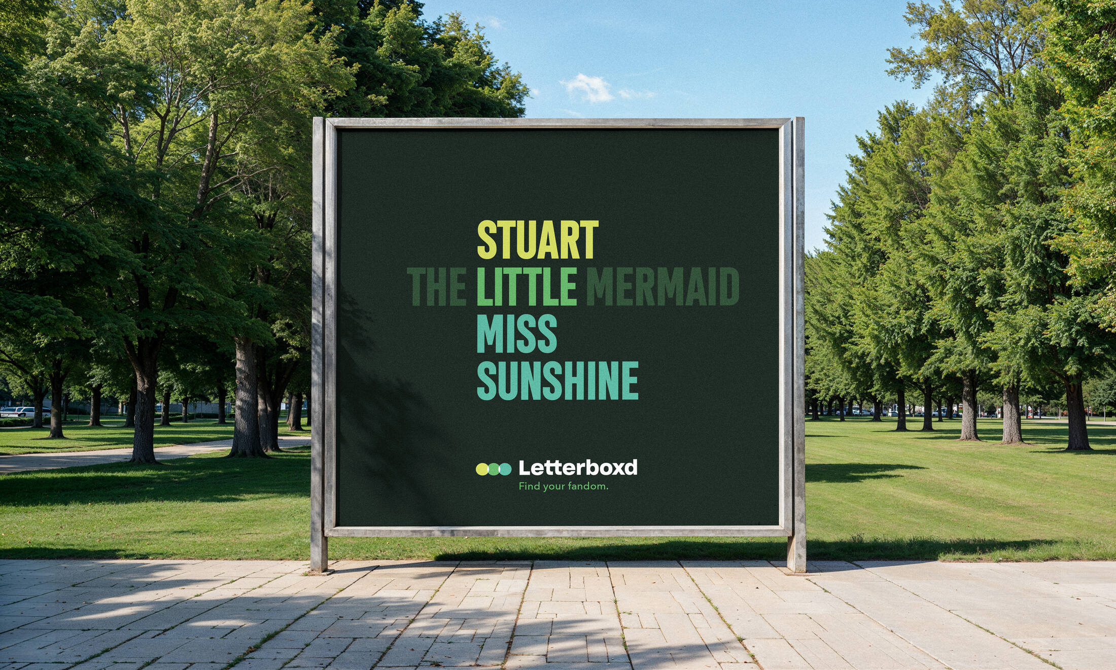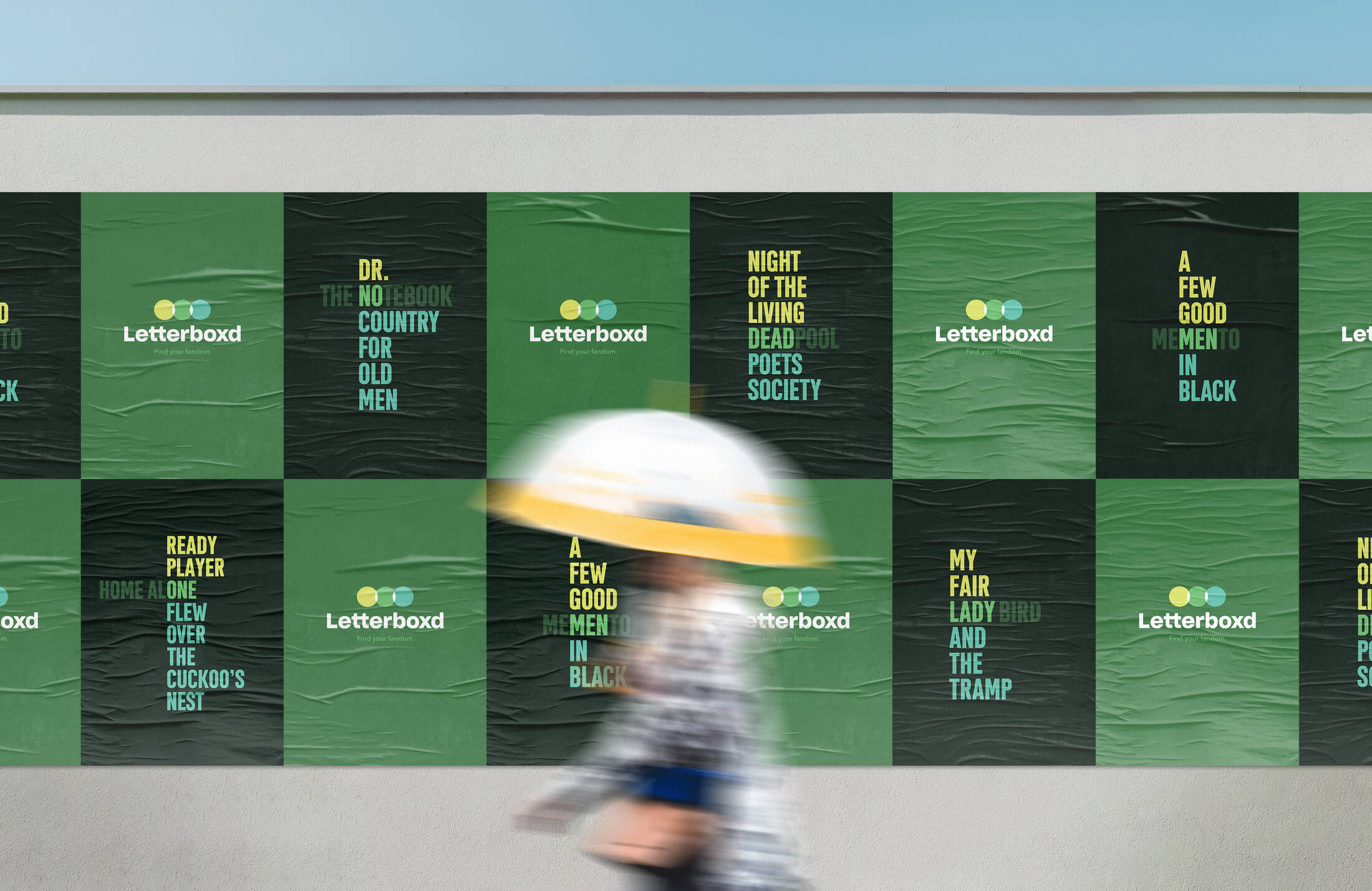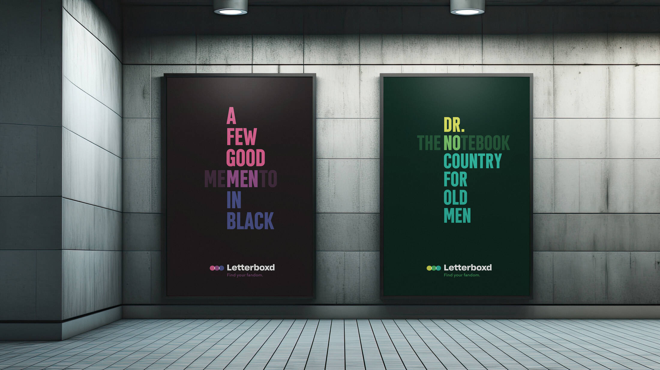 Letterboxd is a popular social networking app and website designed for film lovers to track, rate, review, and list movies—often described as "Goodreads for movies." The logo is based on a Venn diagram because the platform aims to bring fans of different genres together around the shared love of movies. So we made lists of all our favorite films and integrated them into fun word puzzles that work like typographic Venn diagrams—bringing different movies together, just like Letterboxd brings various movie lovers together.