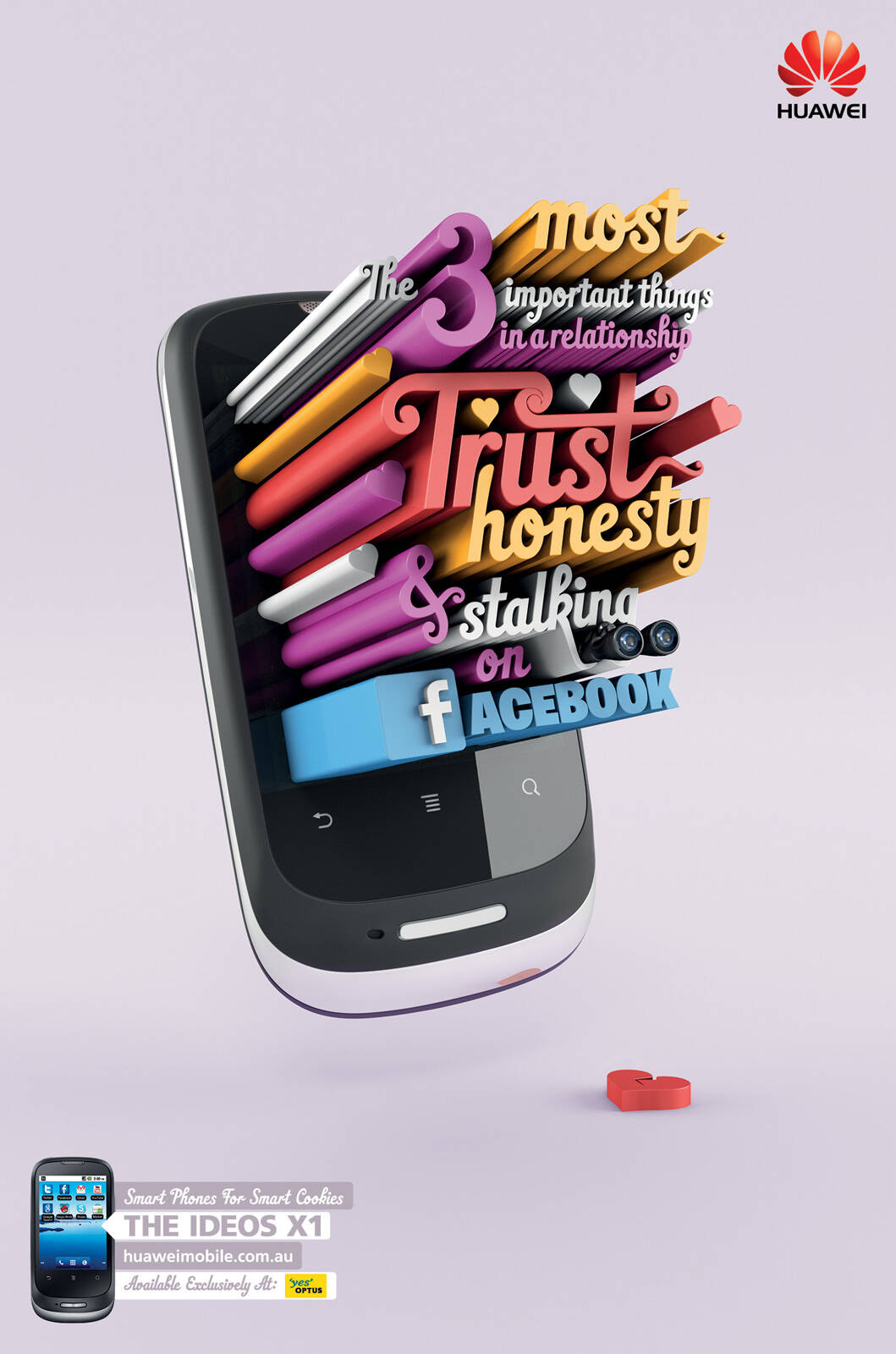 This professional campaign titled 'Finger Fun, Let's Stalk, Bieber Fever, Shoe Fetish, Maste...' was published in Australia in August, 2011. It was created for the brand: Huawei, by ad agency: Arnold. This Print medium campaign is related to the Electronics, Technology industry and contains 6 media assets. It was submitted over 14 years ago.