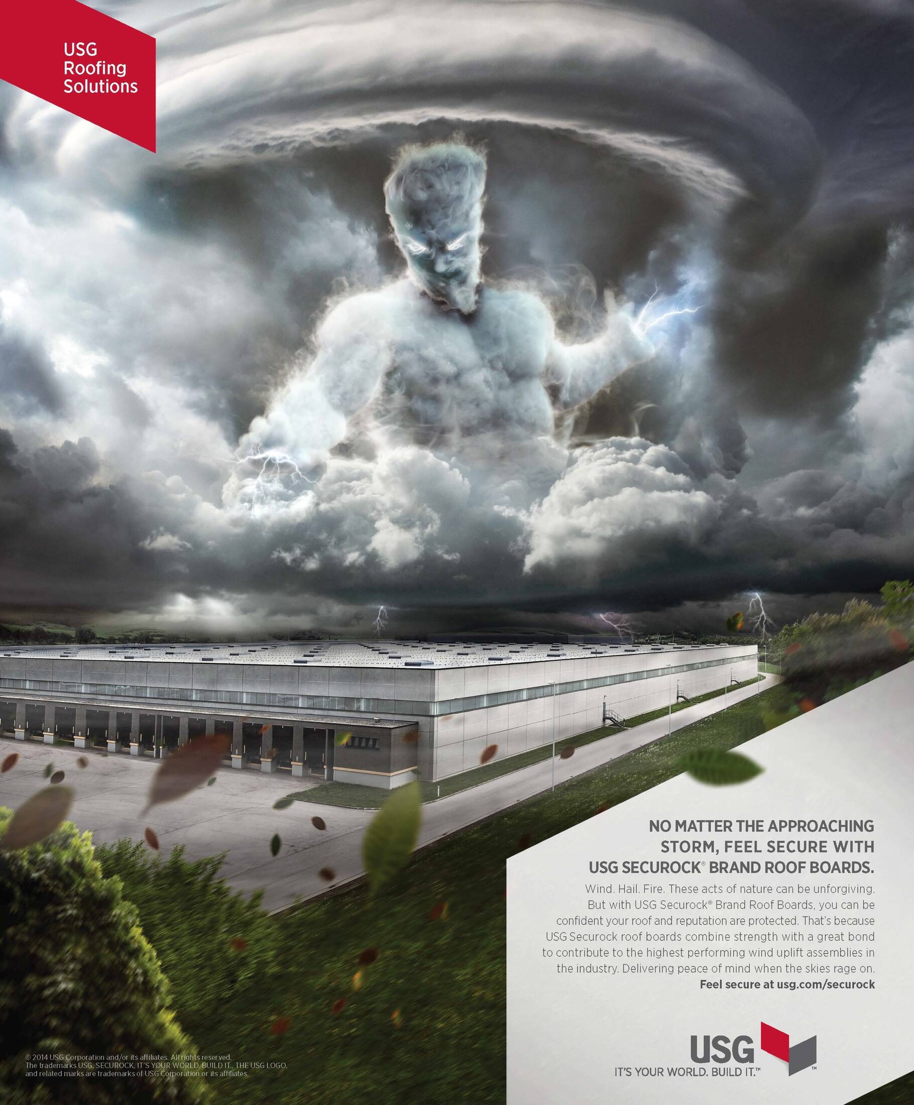 This professional campaign titled 'Fire, Hail, Storm' was published in United States in March, 2015. It was created for the brand: USG Corporation, by ad agency: Gyro. This Print medium campaign is related to the Industrial industry and contains 3 media assets. It was submitted over 10 years ago.