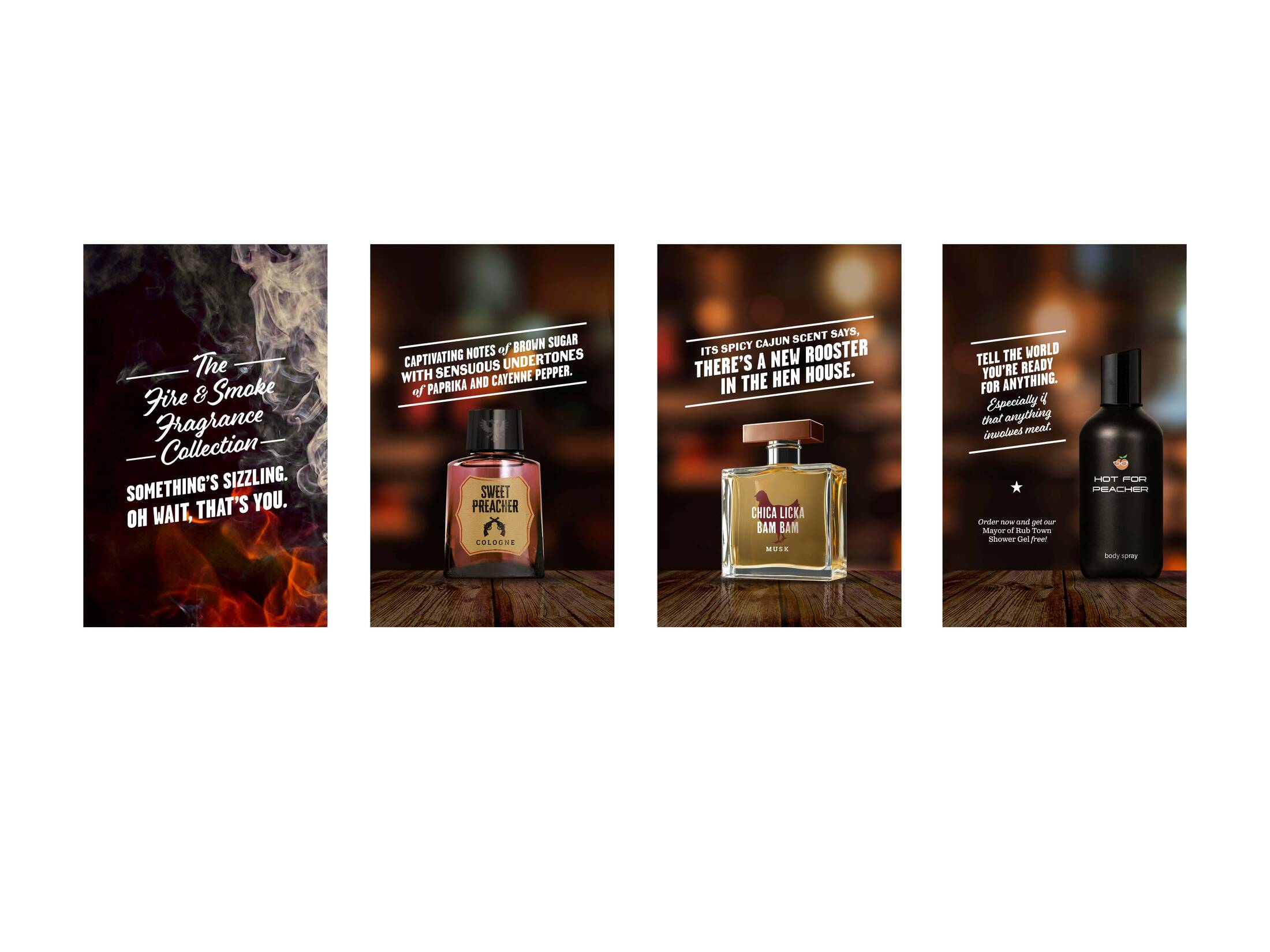 The Fire & Smoke Society is an insurgent maker of spices, rubs, and sauces. Their customer reviews range from "I put that sh** on everything" to "It's so good it makes you want to slap your mama." It's that passion for bold flavors that inspired the Fire & Smoke Society and their agency Wheel+Spoke to launch a line of fragrances. So now, the person who enjoys the aroma of a wellseasoned pork butt doing the low and slow can enjoy that sweet scent any time with the new Fire & Smoke Fragrance Collection.