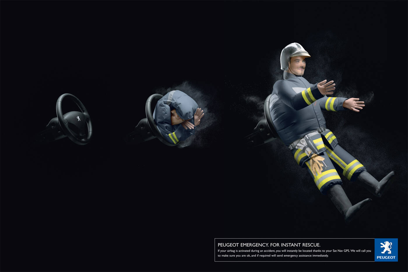 This professional campaign titled 'Firefighter air-bag' was published on February 01, 2008. It was created for the brand: Peugeot, by ad agency: BETC EURO RSCG. This Print medium campaign is related to the Automotive and Personal Transportation industry and contains 1 media asset. It was submitted almost 18 years ago.