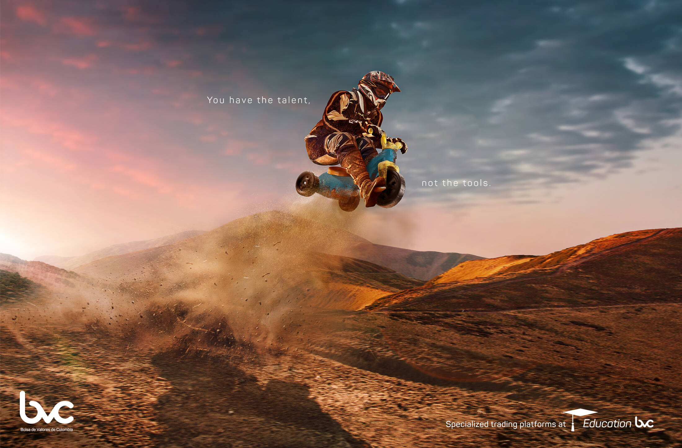 This professional campaign titled 'Firefighters, Cowboy, Buddhist, Kayak, Motocross' was published in Colombia in March, 2019. It was created for the brand: Bolsa de Valores de Colombia, by ad agency: Silva Publicidad. This Print medium campaign is related to the Finance industry and contains 5 media assets. It was submitted over 6 years ago.