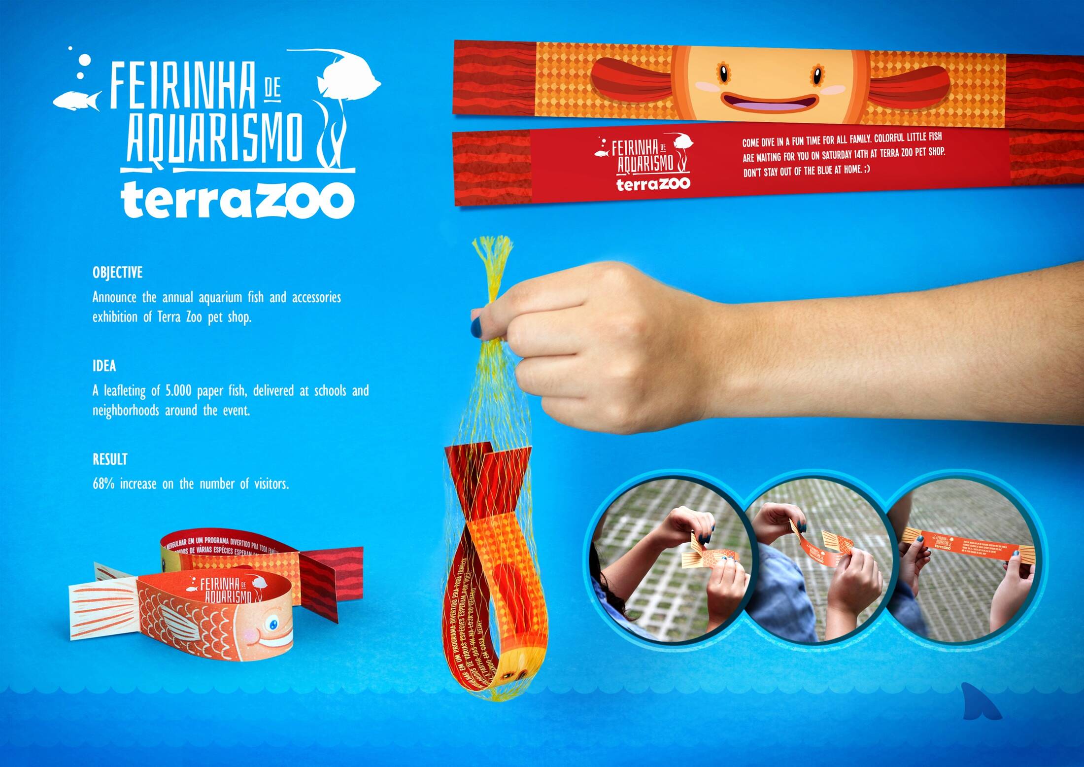 This professional campaign titled 'Fish' was published in Brazil in March, 2015. It was created for the brand: Terra Zoo, by ad agency: Quadrante. This Static Images medium campaign is related to the Retail Services industry and contains 1 media asset. It was submitted over 10 years ago.