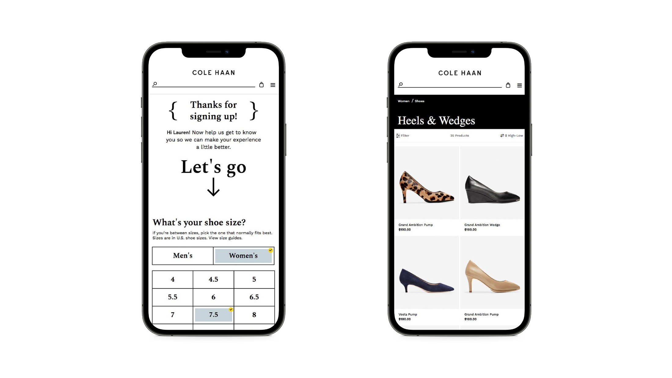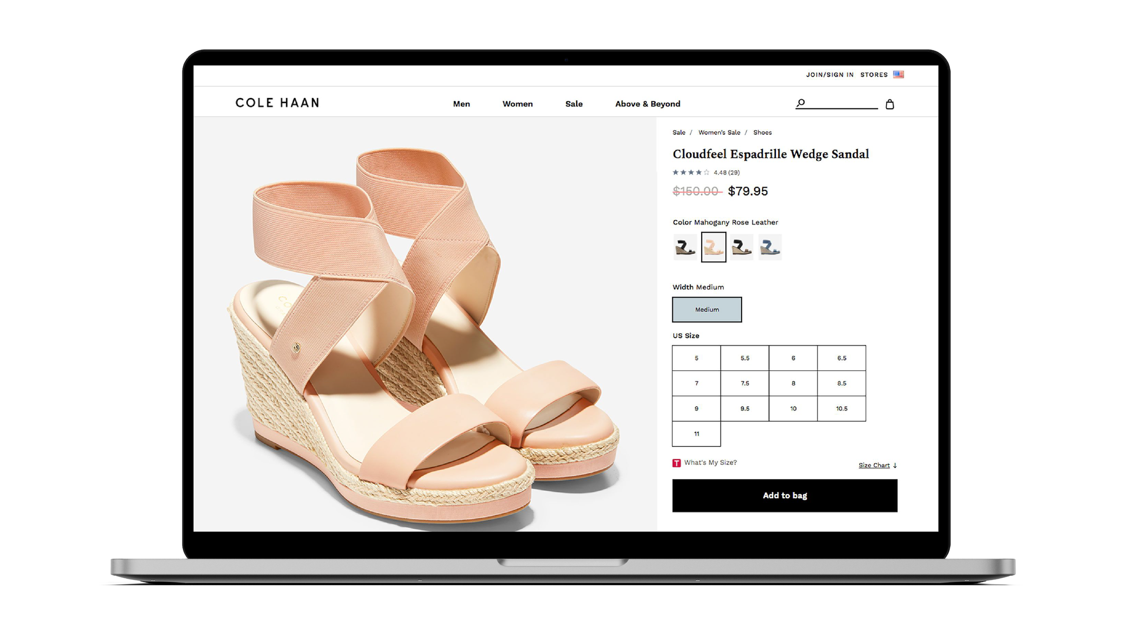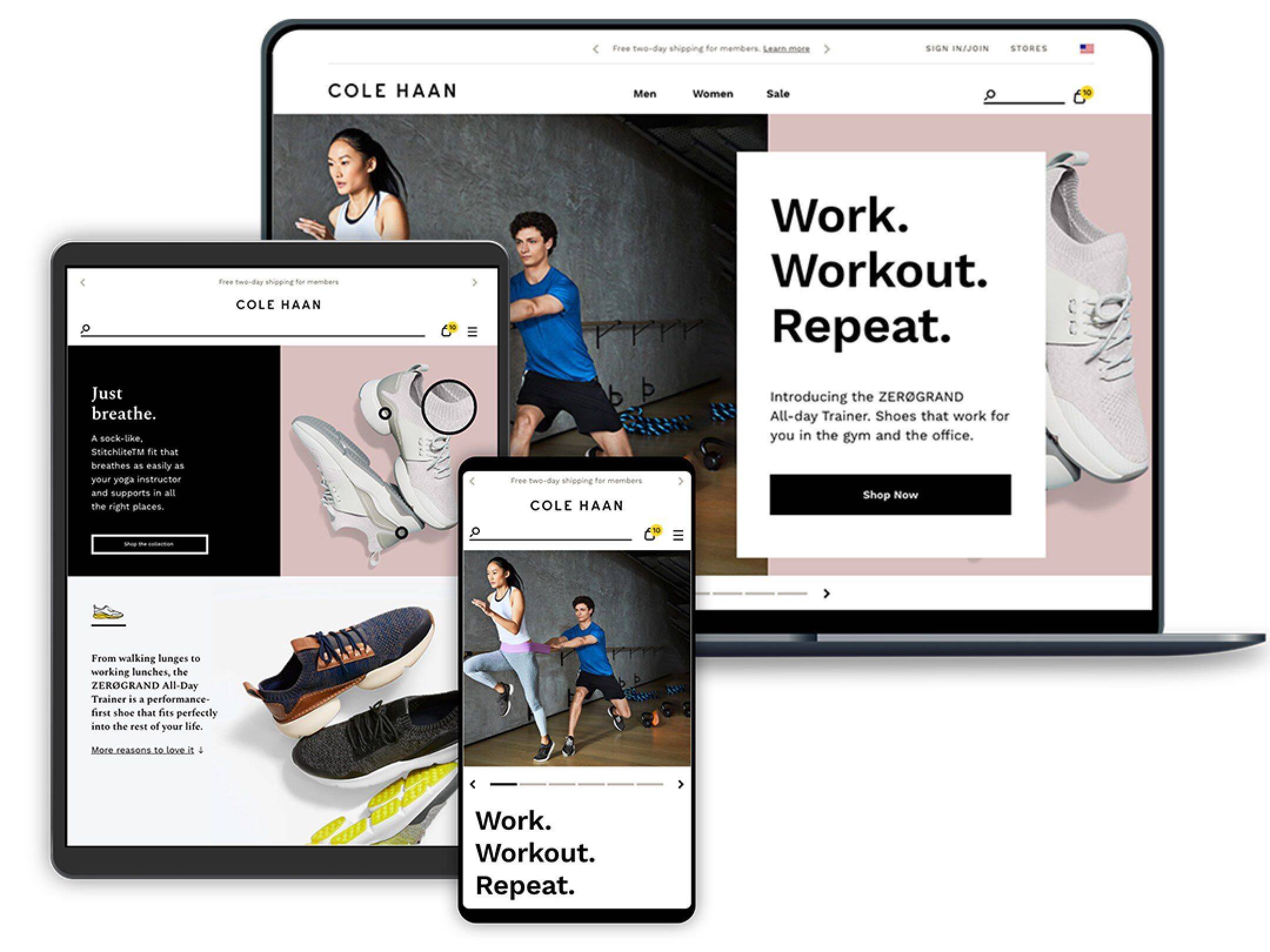To support its ambitious growth goals and tap into a younger, urban consumer target, Cole Haan needed an e-commerce experience that combined technical functionality with a design and voice that told a better story. To improve conversion rates, features were designed to accelerate checkout while still capturing shopper data and creating a personalized shopping experience.