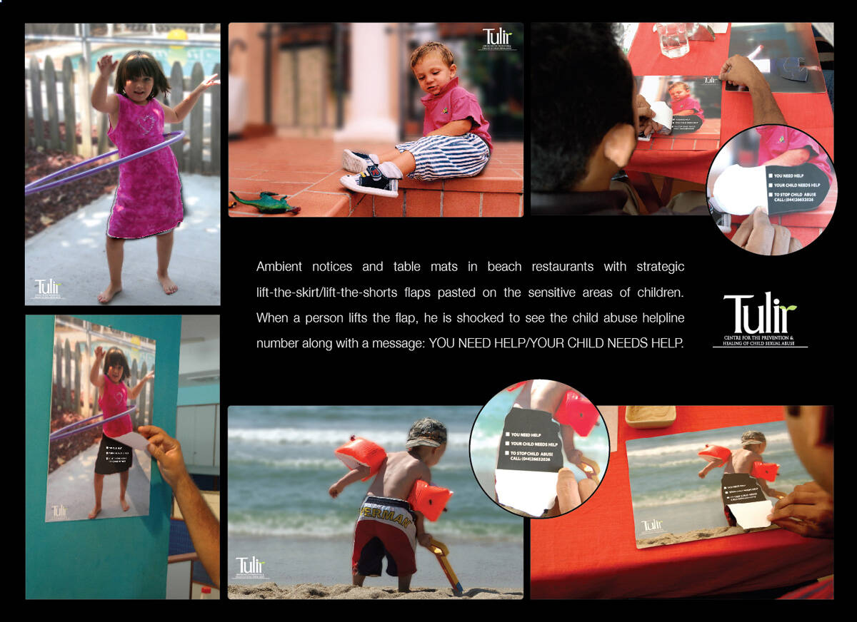 This professional campaign titled 'Flap' was published in India in April, 2007. It was created for the brand: Tulir, by ad agency: JWT. This Ambient medium campaign is related to the Public Interest industry and contains 1 media asset. It was submitted almost 18 years ago.