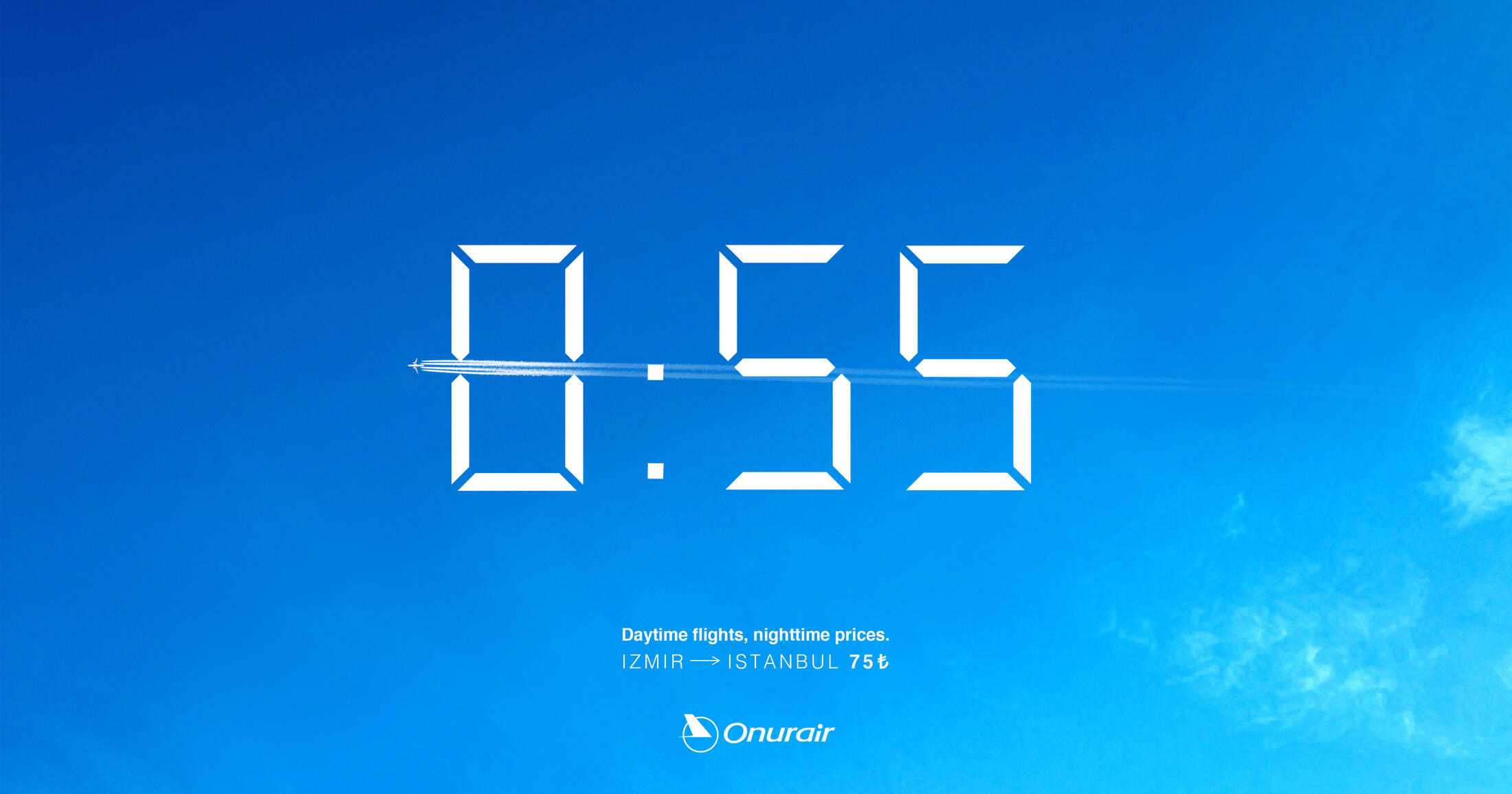 This professional campaign titled 'Flight time' was published in Turkey in July, 2016. It was created for the brand: Onur Air, by ad agency: Tribal. This OOH Outdoor medium campaign is related to the Transport industry and contains 2 media assets. It was submitted about 9 years ago.