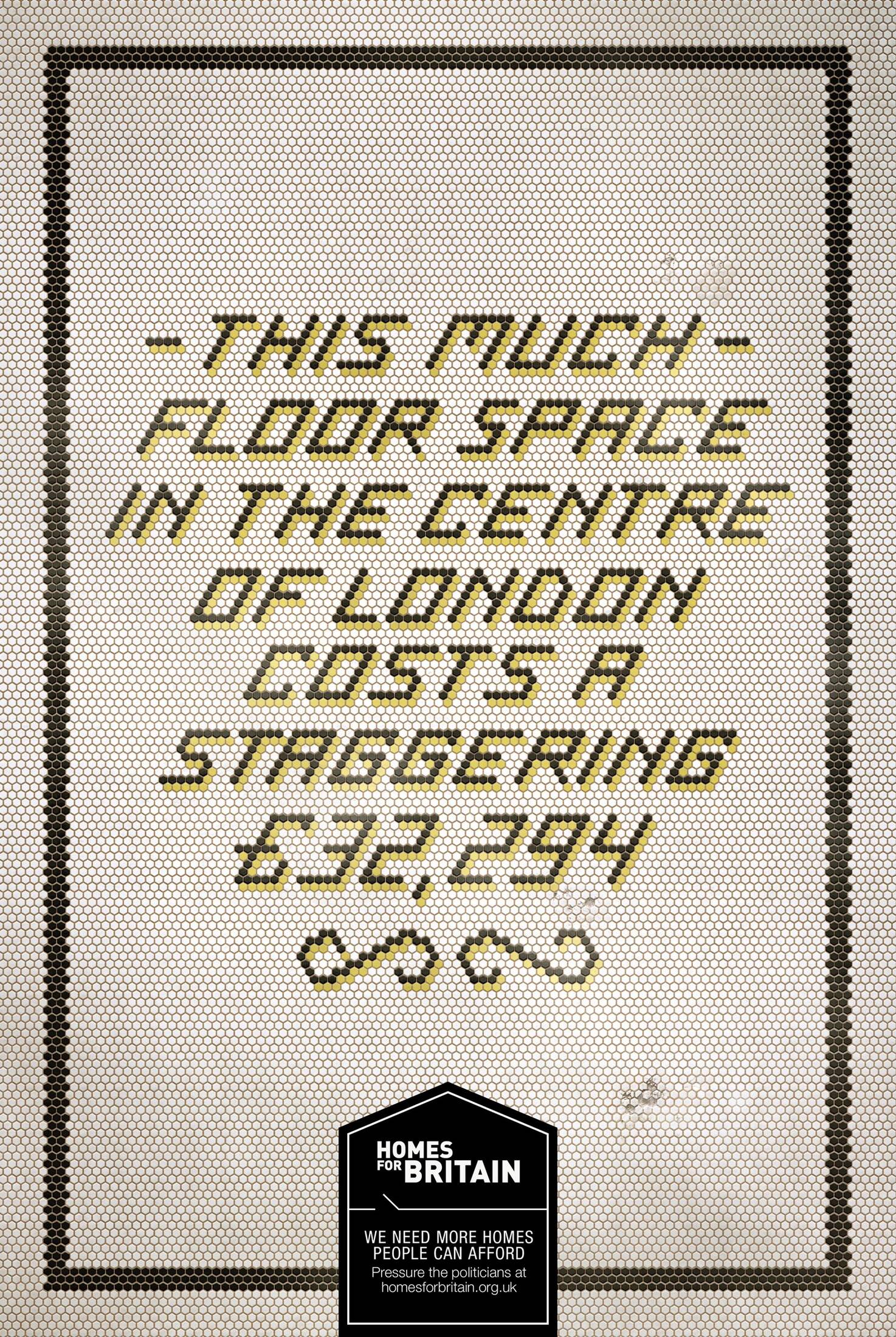 This professional campaign titled 'Floorboards, Carpet, Tiles' was published in United Kingdom in March, 2015. It was created for the brand: Homes for Britain, by ad agency: BBDO. This OOH Outdoor medium campaign is related to the Public Interest industry and contains 3 media assets. It was submitted over 10 years ago.