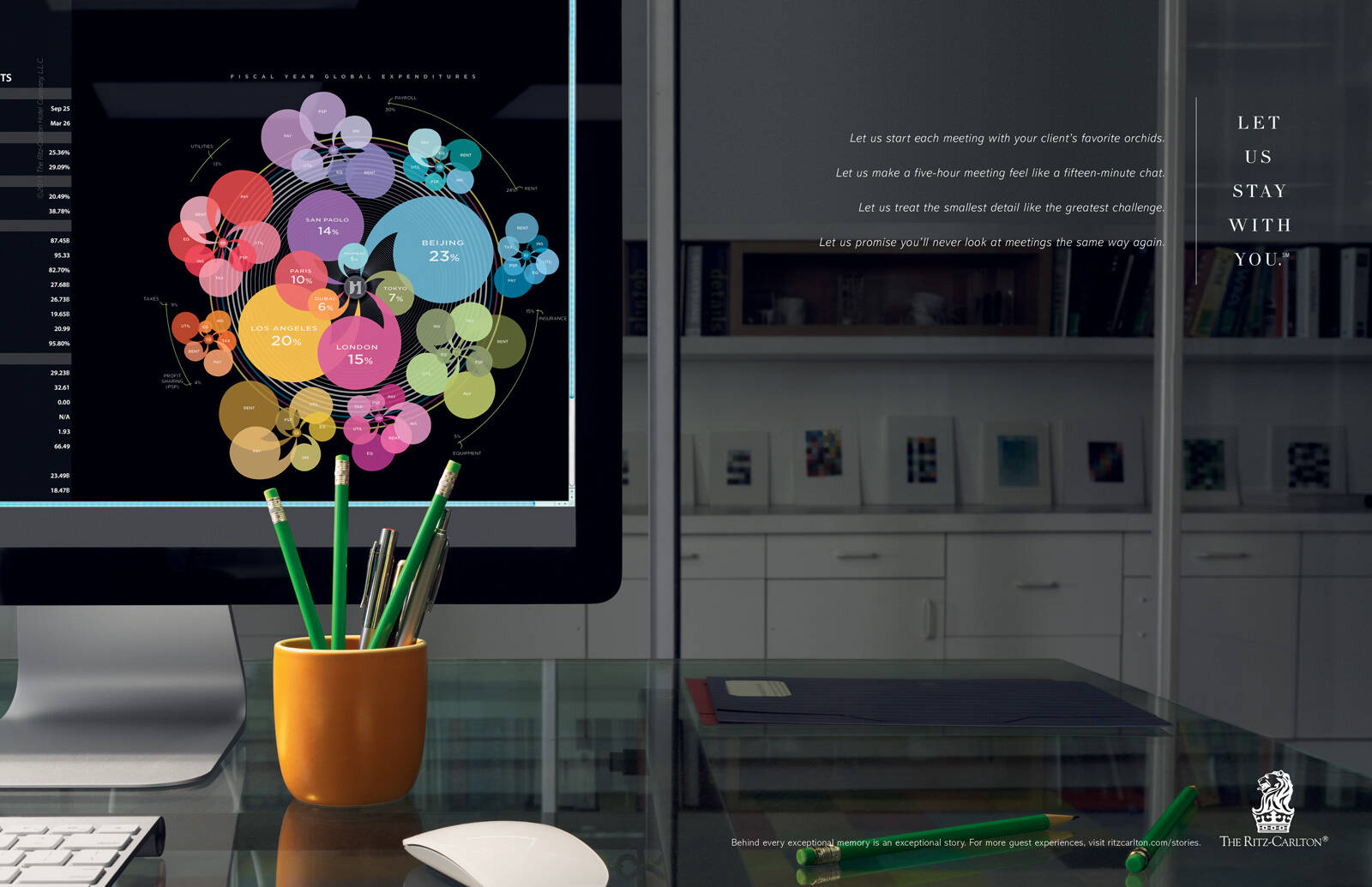 This professional campaign titled 'Flower Arrangement, Skyline, Cucumber Eyes, Sailboat, Umb...' was published in United States in September, 2011. It was created for the brand: The Ritz-Carlton, by ad agency: Team One. This Print medium campaign is related to the Transport industry and contains 5 media assets. It was submitted about 14 years ago.