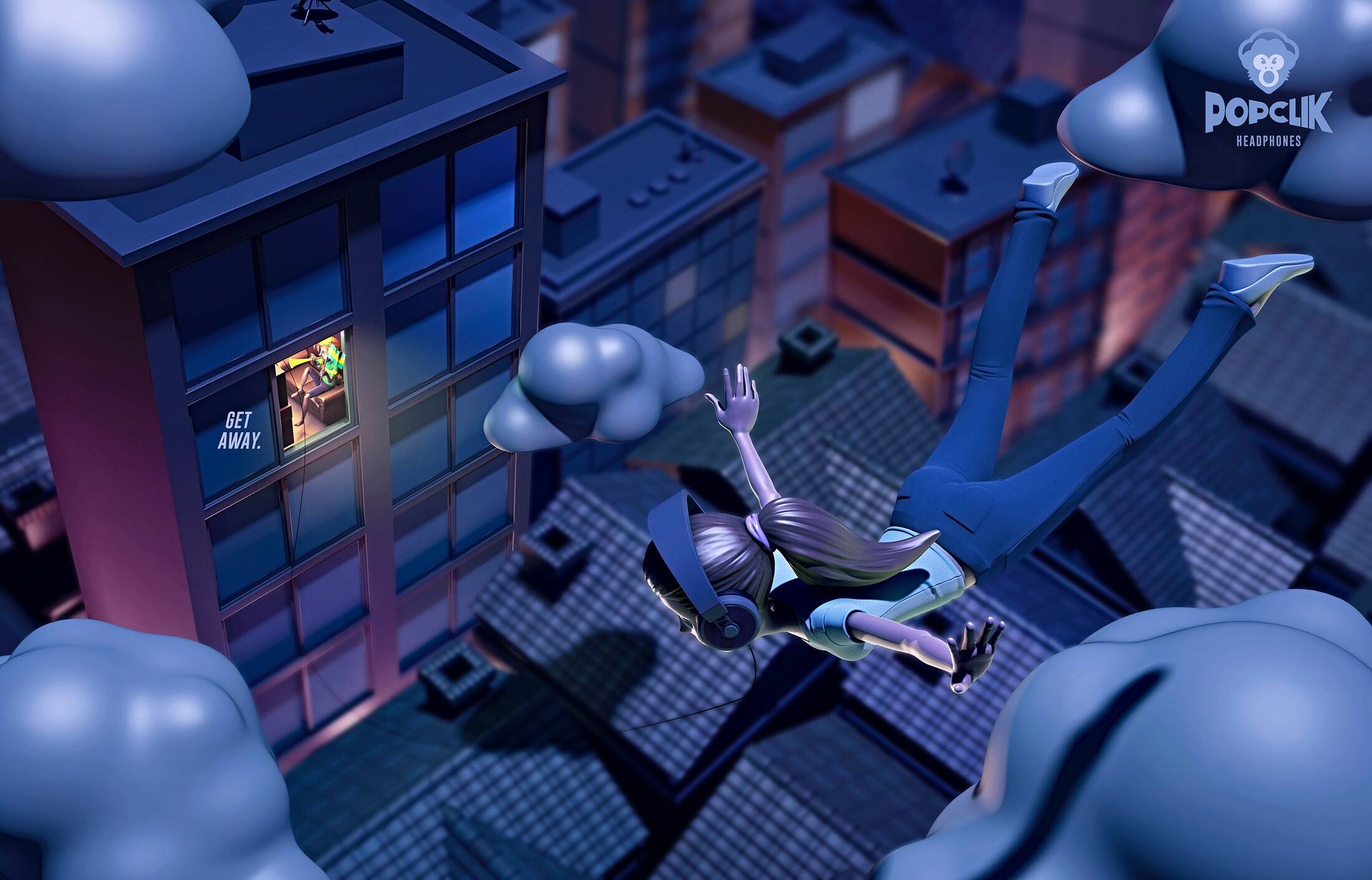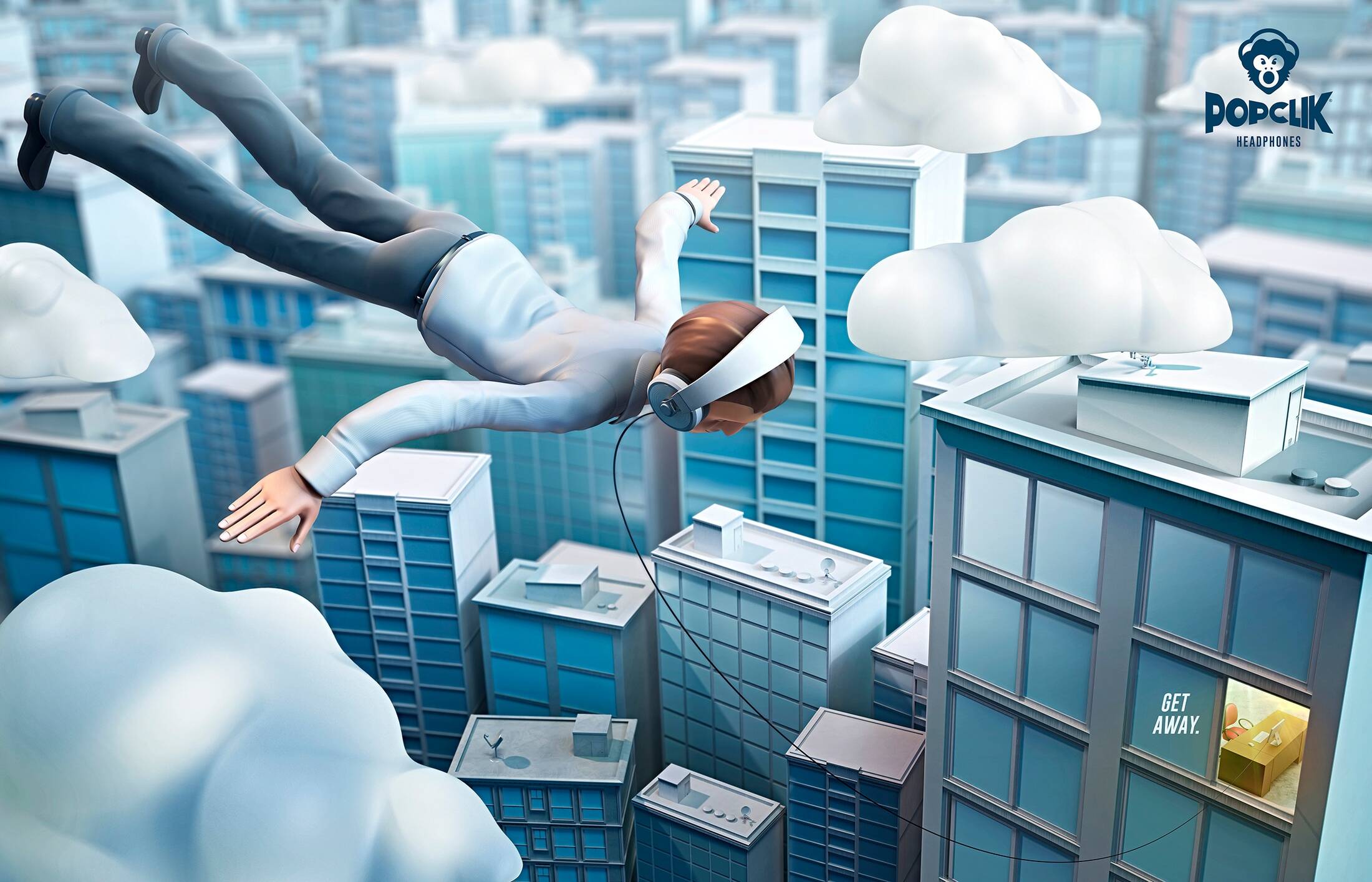 This professional campaign titled 'Flying Girl, Flying Boy' was published in United States in April, 2014. It was created for the brand: PopClik Headphones, by ad agency: Y&R. This Print medium campaign is related to the Electronics, Technology industry and contains 2 media assets. It was submitted over 11 years ago.