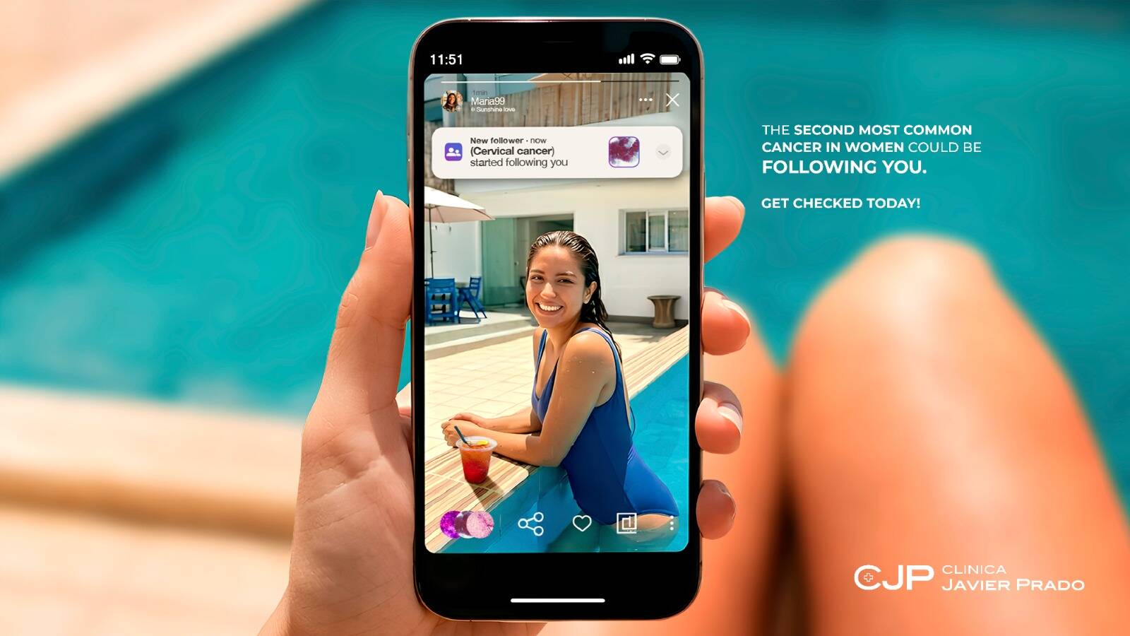 Cervical cancer is the second most common cancer among women. To make its silent risk visible and drive prevention, we used social media as a powerful analogy.