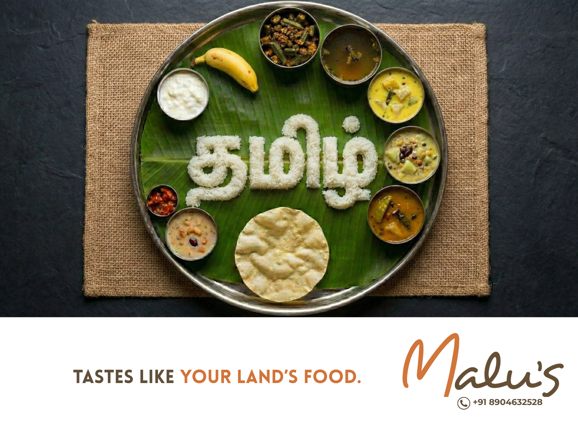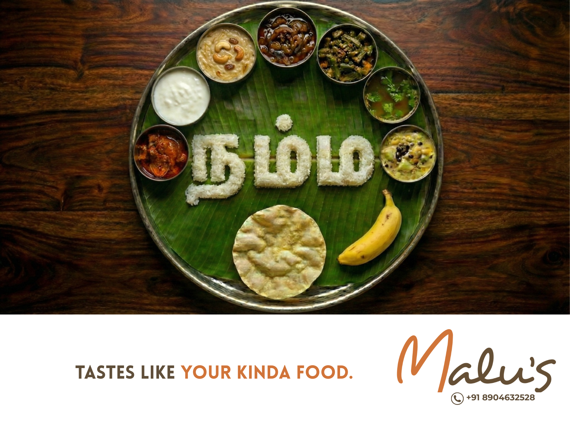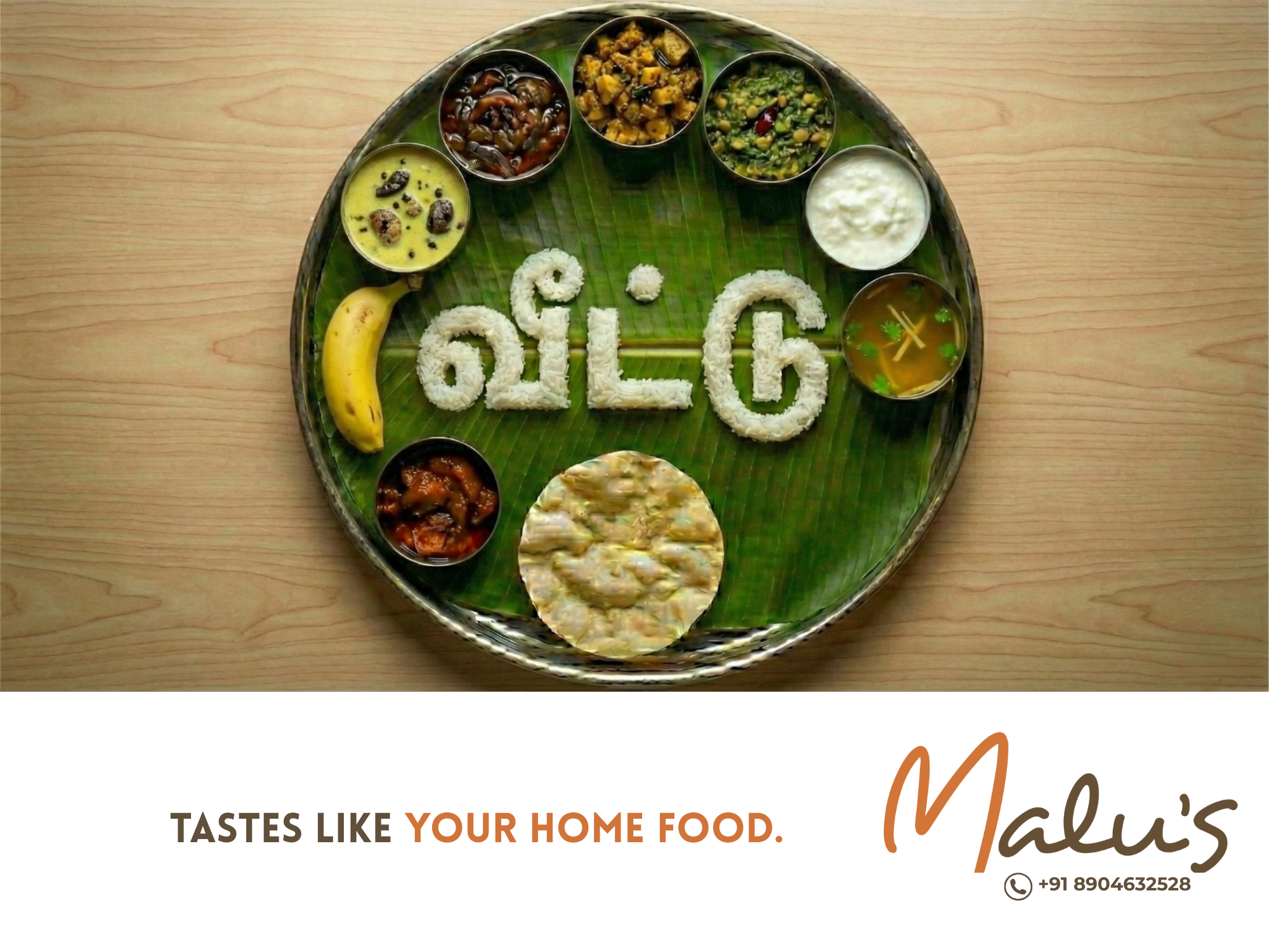 The task was to spread the word on Malu's Kitchen, a home food delivery company based out of Bangalore. They serve authentic Tamil-style lunch. So we built a Tanglish campaign that's a visual way of saying Tamizh Saapadu (Tamil Food), Veetu Saapadu (Home Food), Amma Saapadu (Mother's food), and Namma Saapadu (Our food). The key visuals featured Key Tamil words that matter to those who crave for Tamil food.