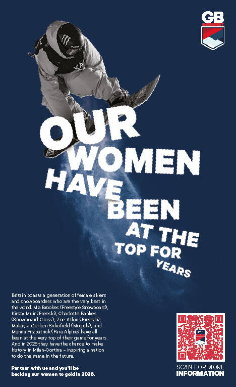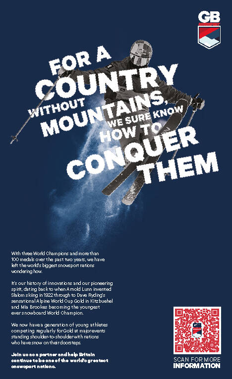 Designed in collaboration with creative agency, BMB, the ads feature iconic imagery from photographer, Sam Mellish, and coach, Jamie Matthews of athletes of British snowsport athletes including Freestyle Snowboard World Champion Mia Brookes, showcasing the remarkable successes, heritage, achievements and longstanding history that Britain has in international skiing and snowboarding.