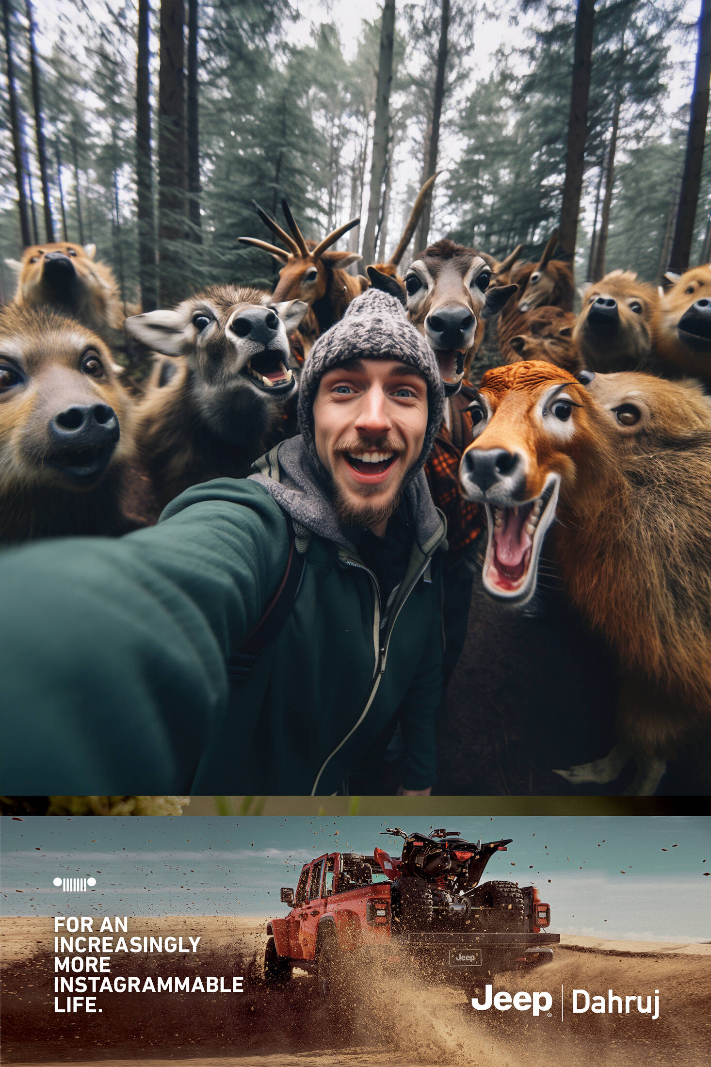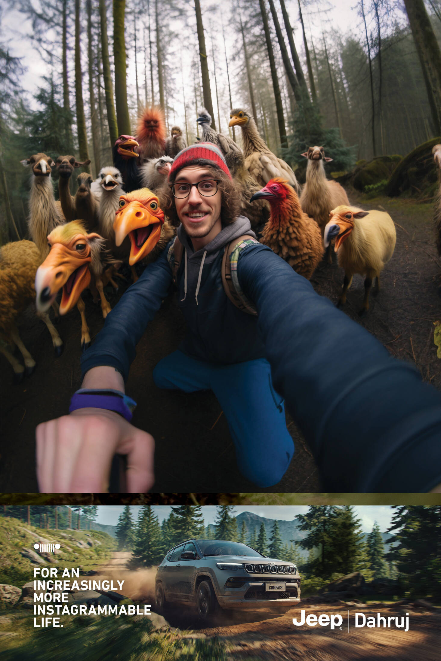 This professional campaign titled 'For an Increasingly More Instagrammable Life.' was published in Brazil in October, 2023. It was created for the brand: Jeep Dahruj, by ad agency: DMC Propaganda. This Print medium campaign is related to the Automotive and Personal Transportation industry and contains 4 media assets. It was submitted about 2 years ago by Creative Director: Thiago Taufic of DMC Propaganda.