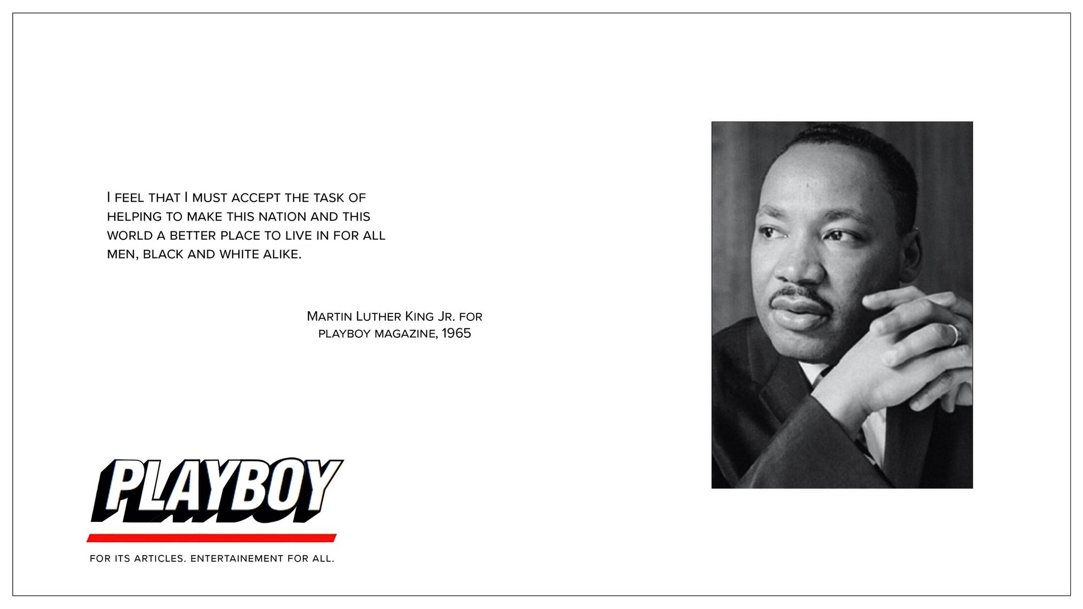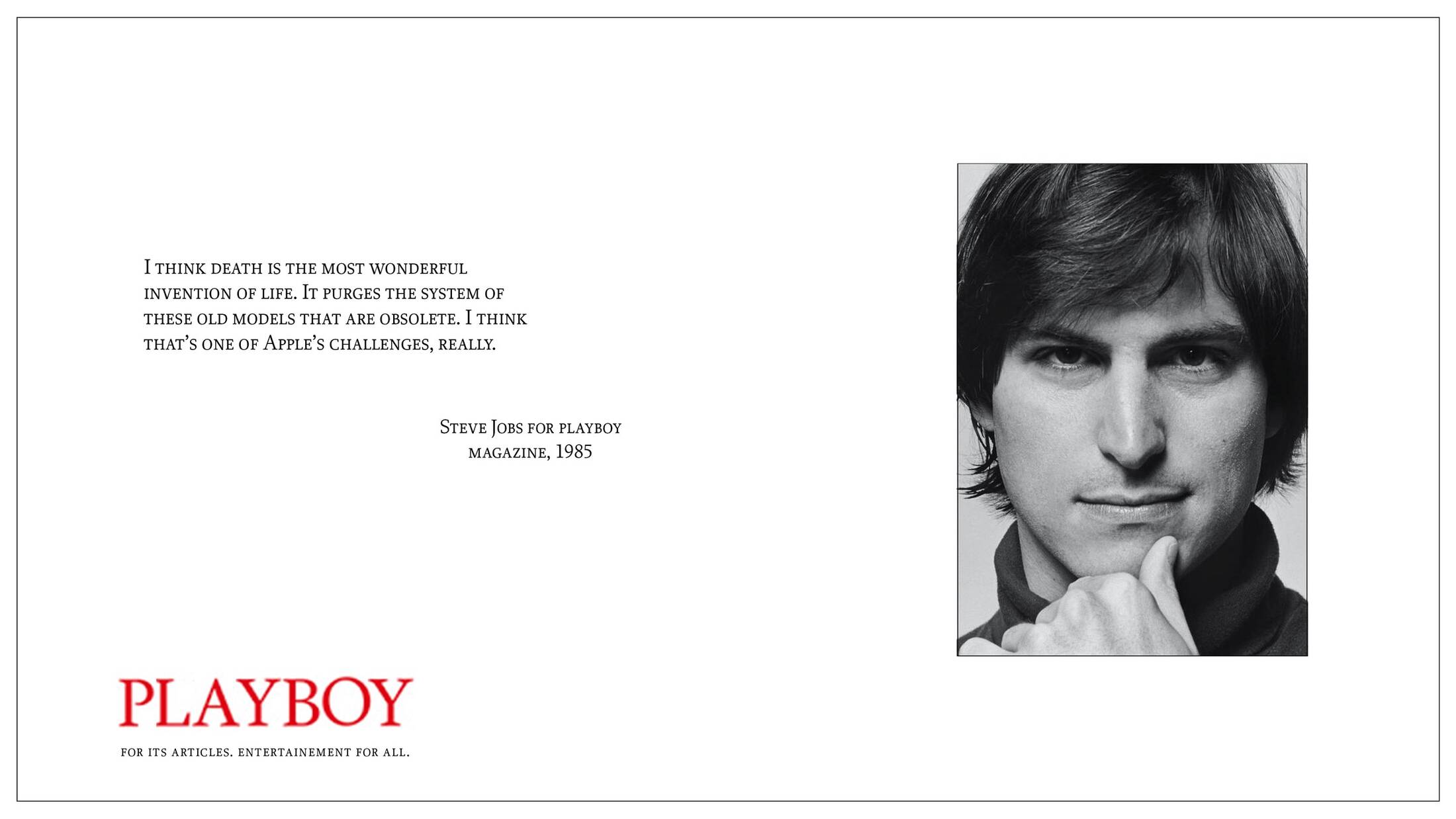 Playboy magazine is known for its sexy covers but not so much for its long history of publishing interviews with notable personalities. The eternal joke that people read Playboy for the articles revealed to be actually true. The magazine’s archive is full of deeply personal and insightful conversations with filmmakers, musicians, and other political figures which is in line with the new brand identity of the magazine. By writing the playboy logo in the style of trusted magazines with quotes from the interviews, the campaign shows that Playboy can hold its own alongside leading publishings powerhouses.