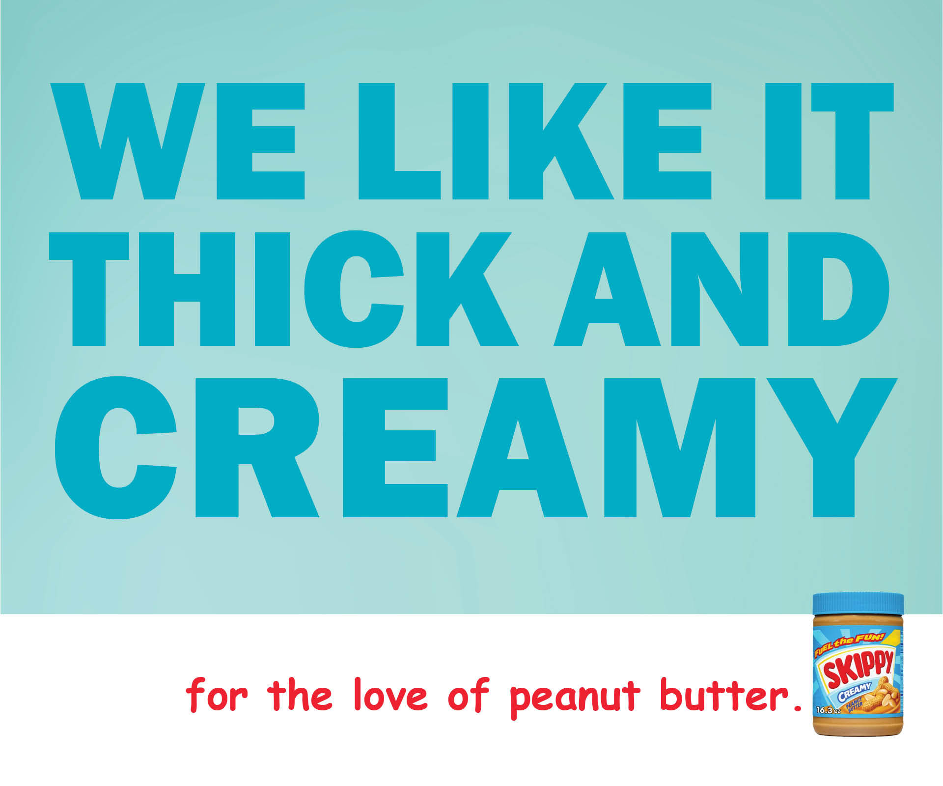 Print 2: "We like it thick and creamy / for the love of peanut butter."