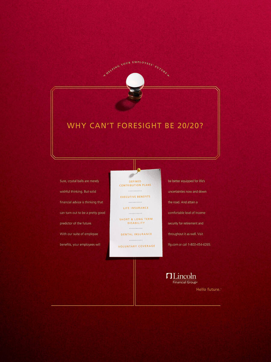 This professional campaign titled 'Foresight' was published on December 09, 2007. This Print medium campaign is related to the Finance industry and contains 1 media asset. It was submitted about 18 years ago.