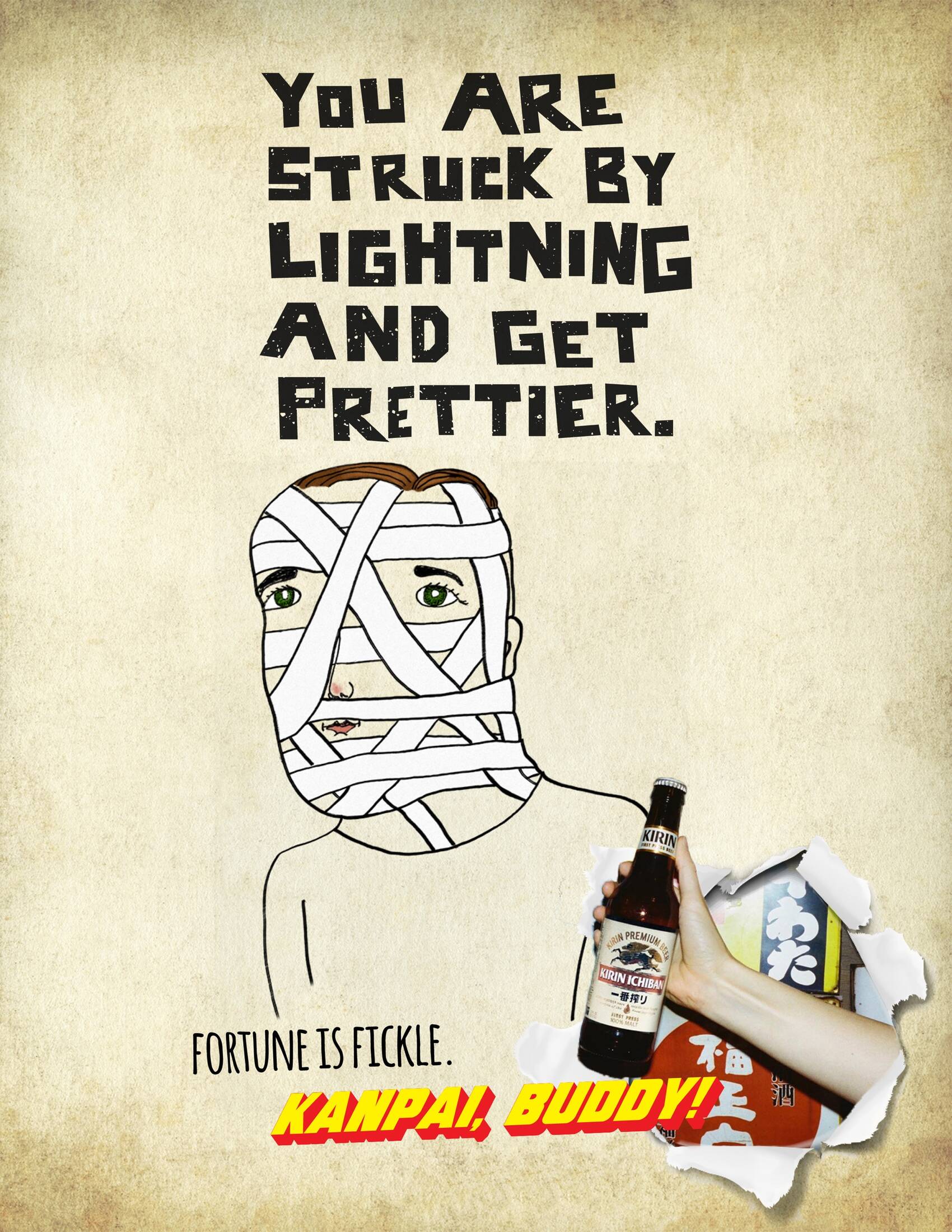 This student campaign titled 'Fortune is Fickle' was published in United States in April, 2019. It was created for the brand: Kirin Ichiban, by ad school: VCU Brandcenter. This Print medium campaign is related to the Alcoholic Drinks industry and contains 4 media assets. It was submitted over 6 years ago.