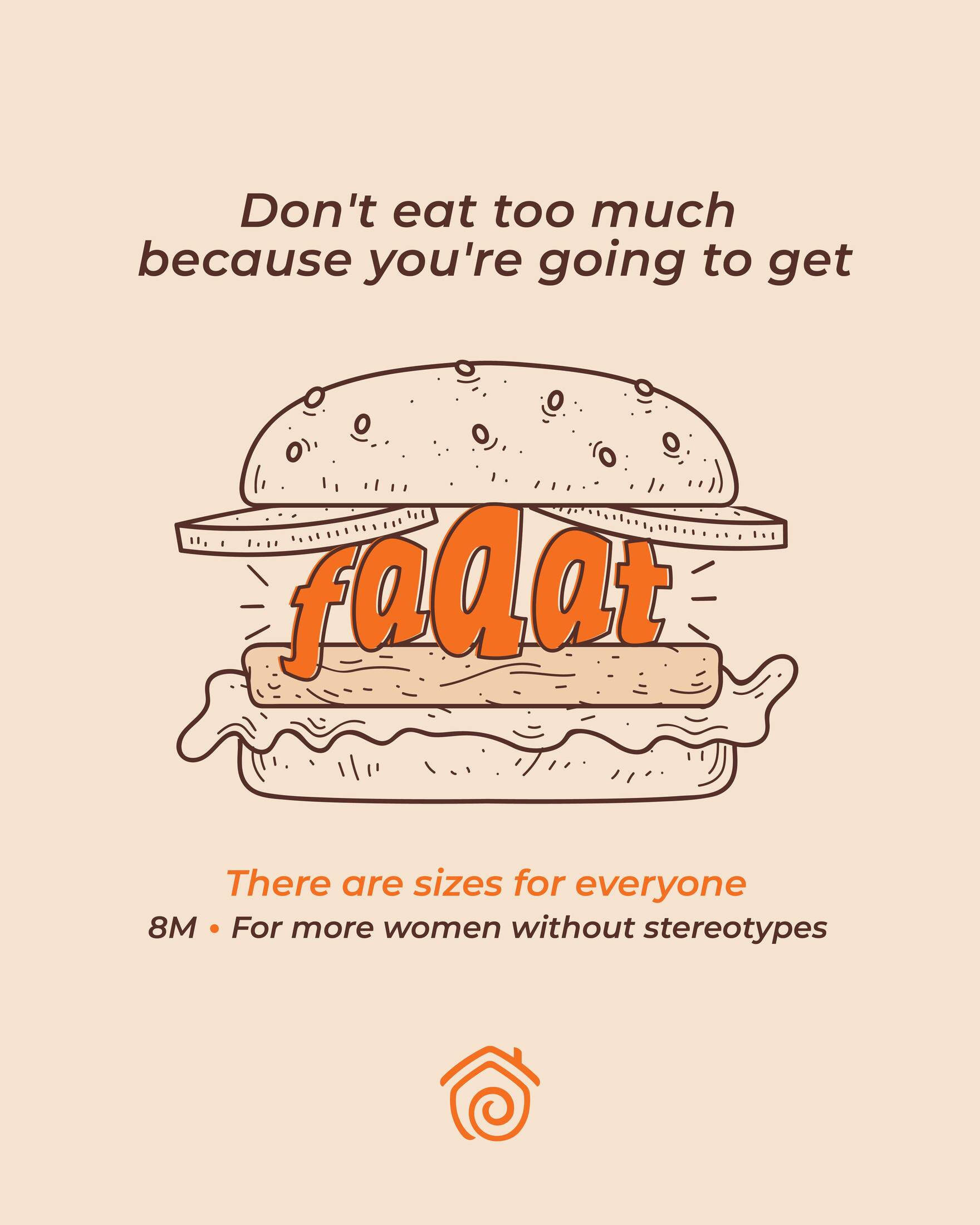 For the 8M Women's Day, we show comments that women receive at mealtime, and they promote a stereotype of “beauty” that prevents them from enjoying their food and their bodies as they are.