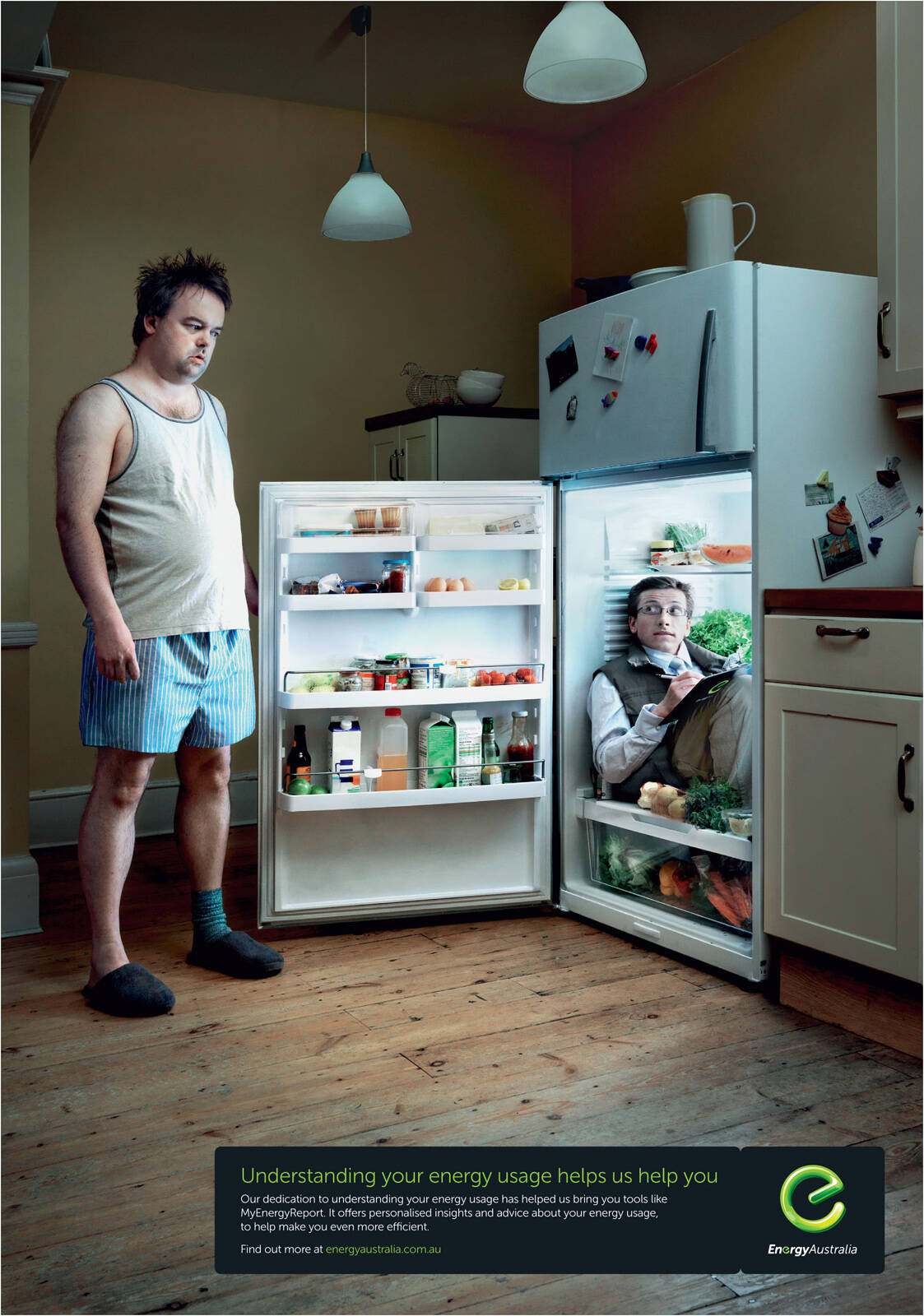 This professional campaign titled 'Fridge, Treadmill, Lamp Shade' was published in Australia in October, 2012. It was created for the brand: EnergyAustralia, by ad agency: Leo Burnett. This Print medium campaign is related to the Industrial industry and contains 3 media assets. It was submitted about 13 years ago.