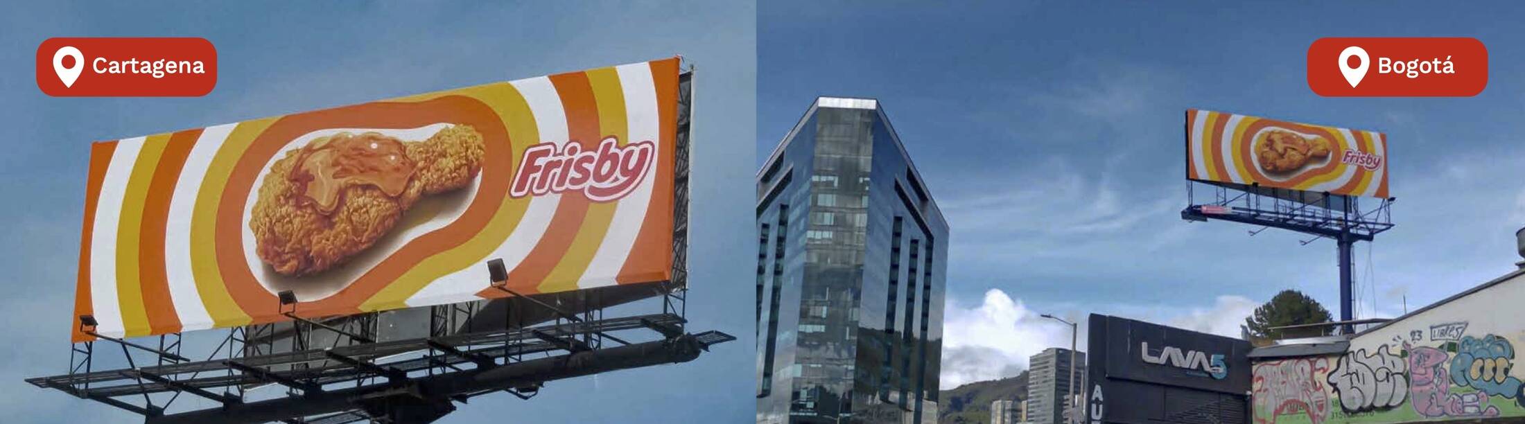 As part of the brand strategy, Frisby takes over the Colombia´s streets with brand and product billboards.