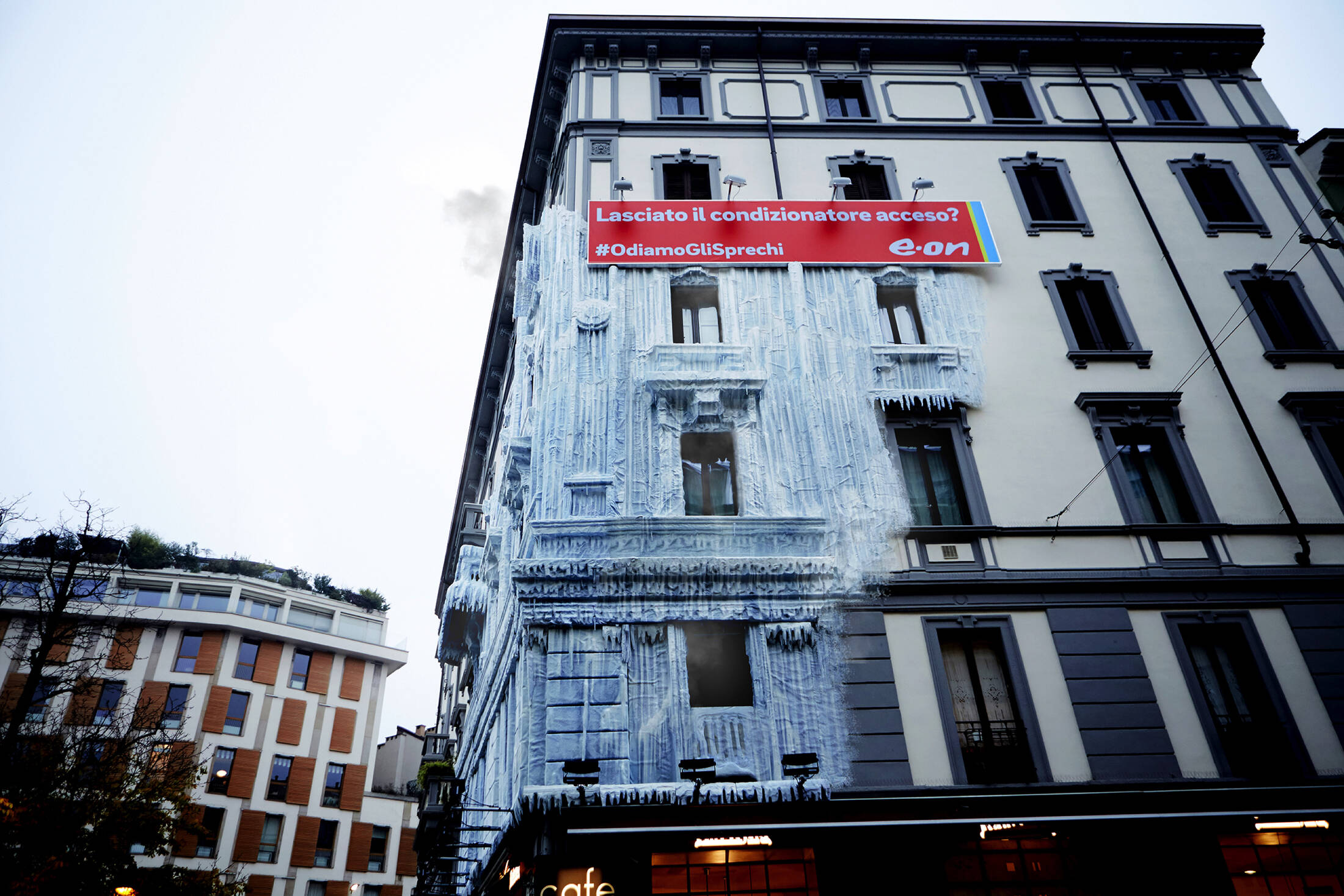 M&C Saatchi Milan has created an innovative campaign for E.ON Italy, aiming to increase the energy company’s presence in the country. As part of the integrated campaign a historic building in the prestigious Brera district of Milan appeared completely frozen due to an air conditioner being left on for months. This was used to demonstrate the effect of energy waste.