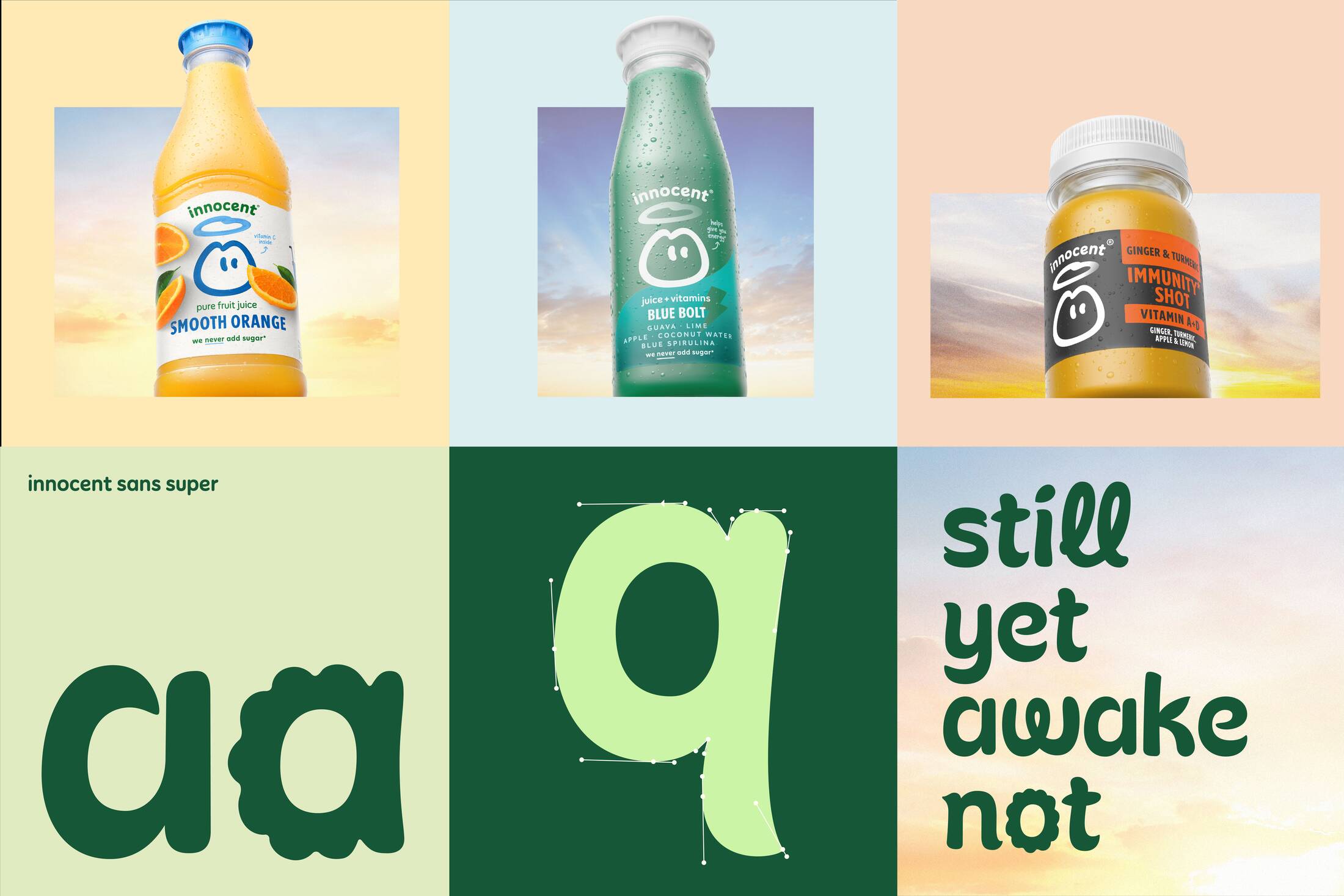 The refreshed look centres on bold, abundant fruit and veg photography, crafted collage details that introduce texture and human warmth, and a new typographic approach influenced by organic forms. The result is a confident yet approachable visual world that feels unmistakably innocent, while elevating the brand for a more modern, pan-European presence.