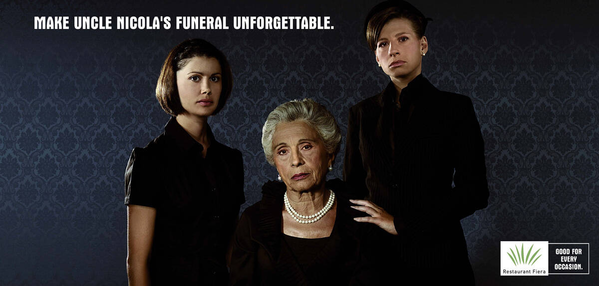 This professional campaign titled 'Funeral, Cheat, Report' was published in Italy in September, 2007. It was created for the brand: Restaurant Fiera, by ad agency: JWT. This Print medium campaign is related to the Food industry and contains 3 media assets. It was submitted almost 18 years ago.