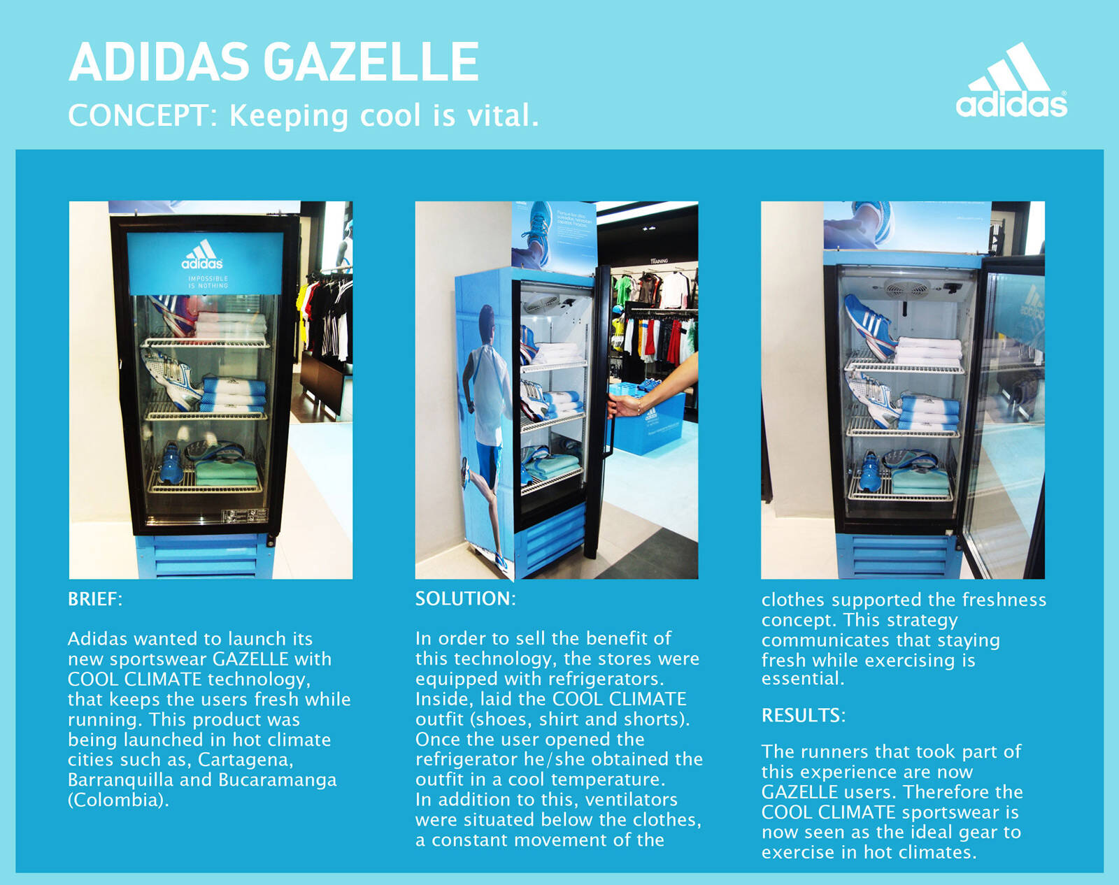 This professional campaign titled 'Gazelle fridge' was published in Colombia in February, 2009. It was created for the brand: adidas, by ad agency: Y&R. This Ambient medium campaign is related to the Fashion industry and contains 1 media asset. It was submitted about 16 years ago.