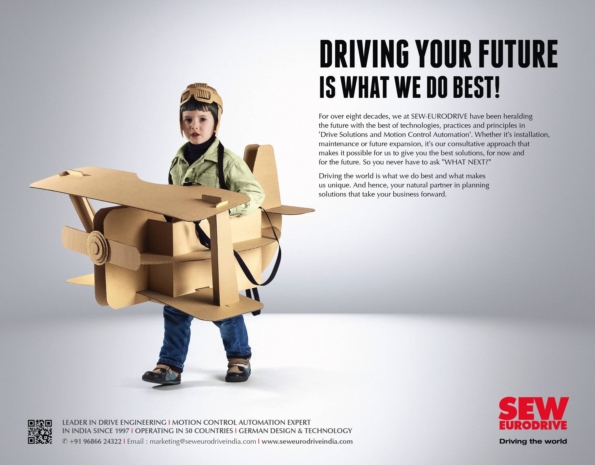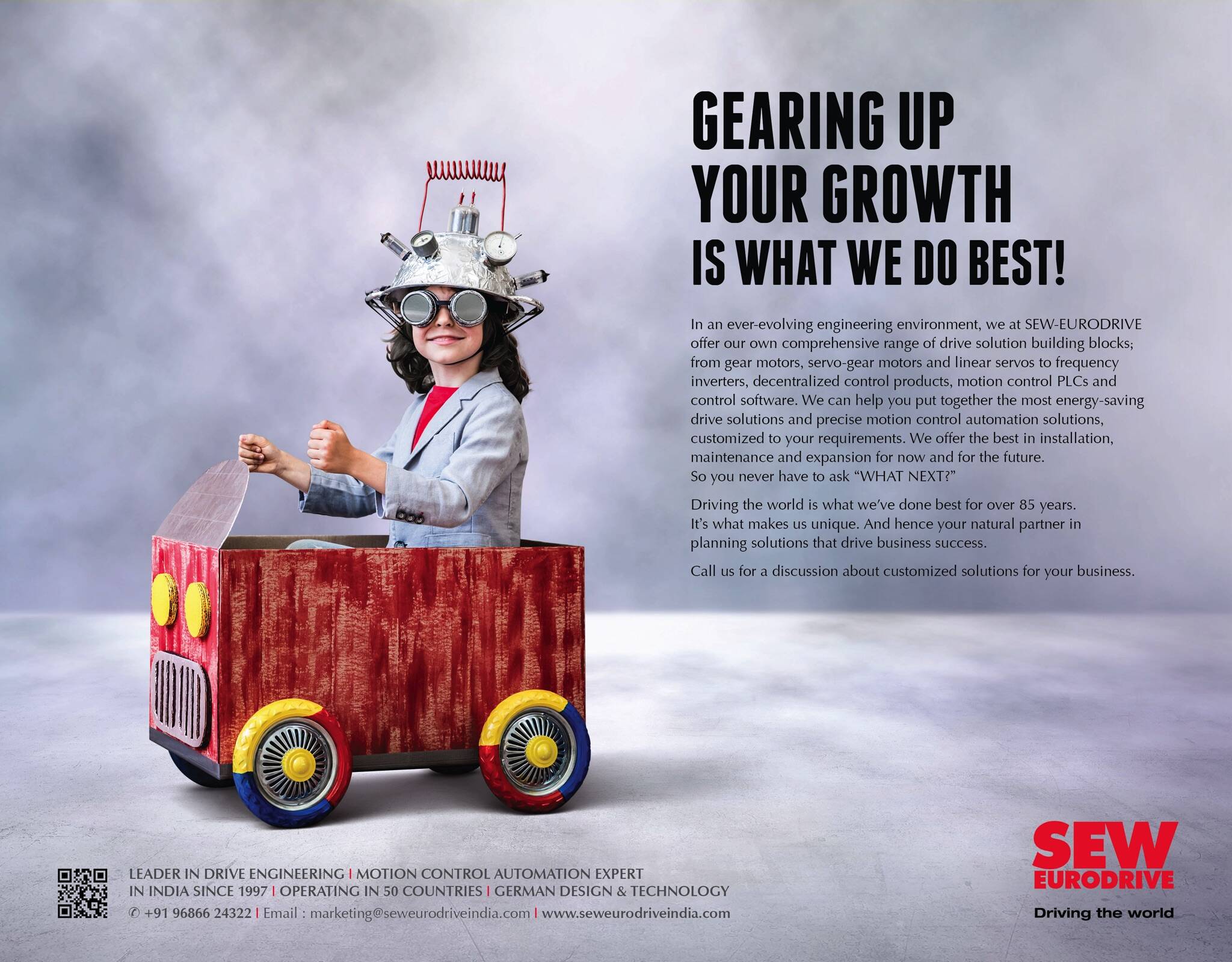 This professional campaign titled 'Gearing Up For Your Growth Is What We Do Best, Futuristic...' was published in India in December, 2017. It was created for the brand: SEW-EURODRIVE, by ad agency: Bolditalic. This Print medium campaign is related to the Automotive and Personal Transportation industry and contains 4 media assets. It was submitted over 7 years ago.