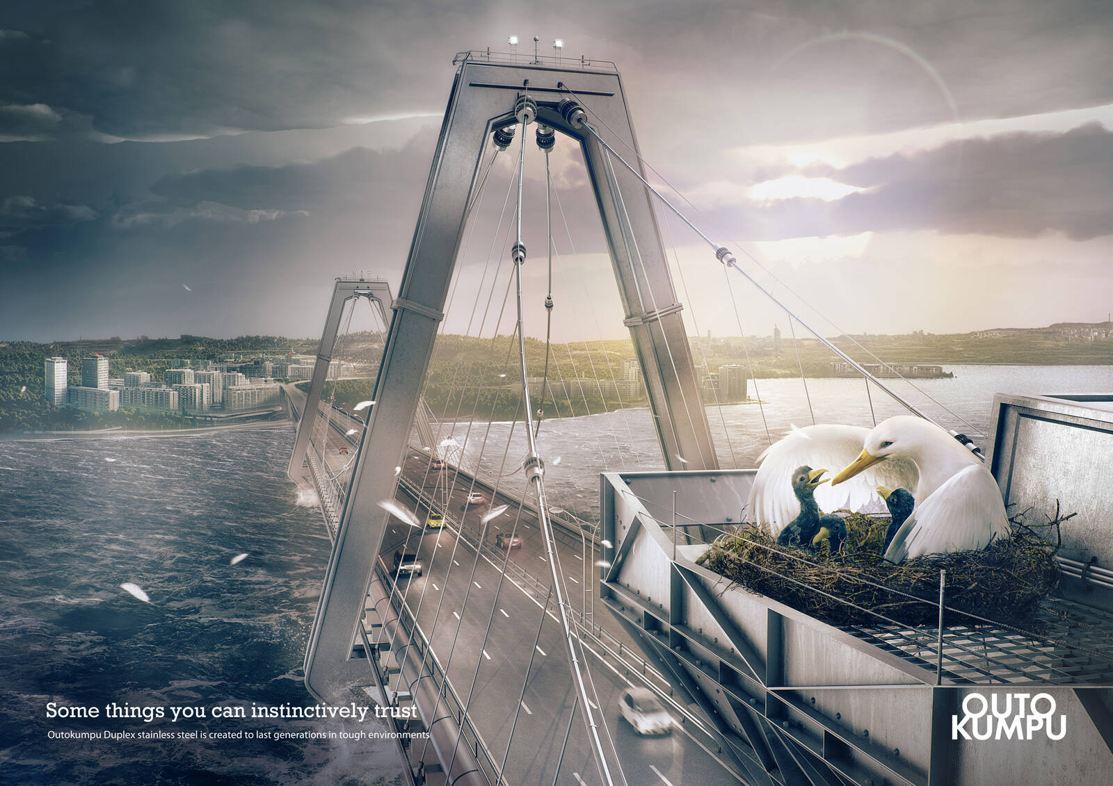 This professional campaign titled 'Gecko, Seabird, Angler fish, Bridge, Stadium, Butterfly' was published in Finland in January, 2012. It was created for the brand: Outokumpu, by ad agency: Euro RSCG. This Print medium campaign is related to the Industrial industry and contains 6 media assets. It was submitted over 13 years ago.