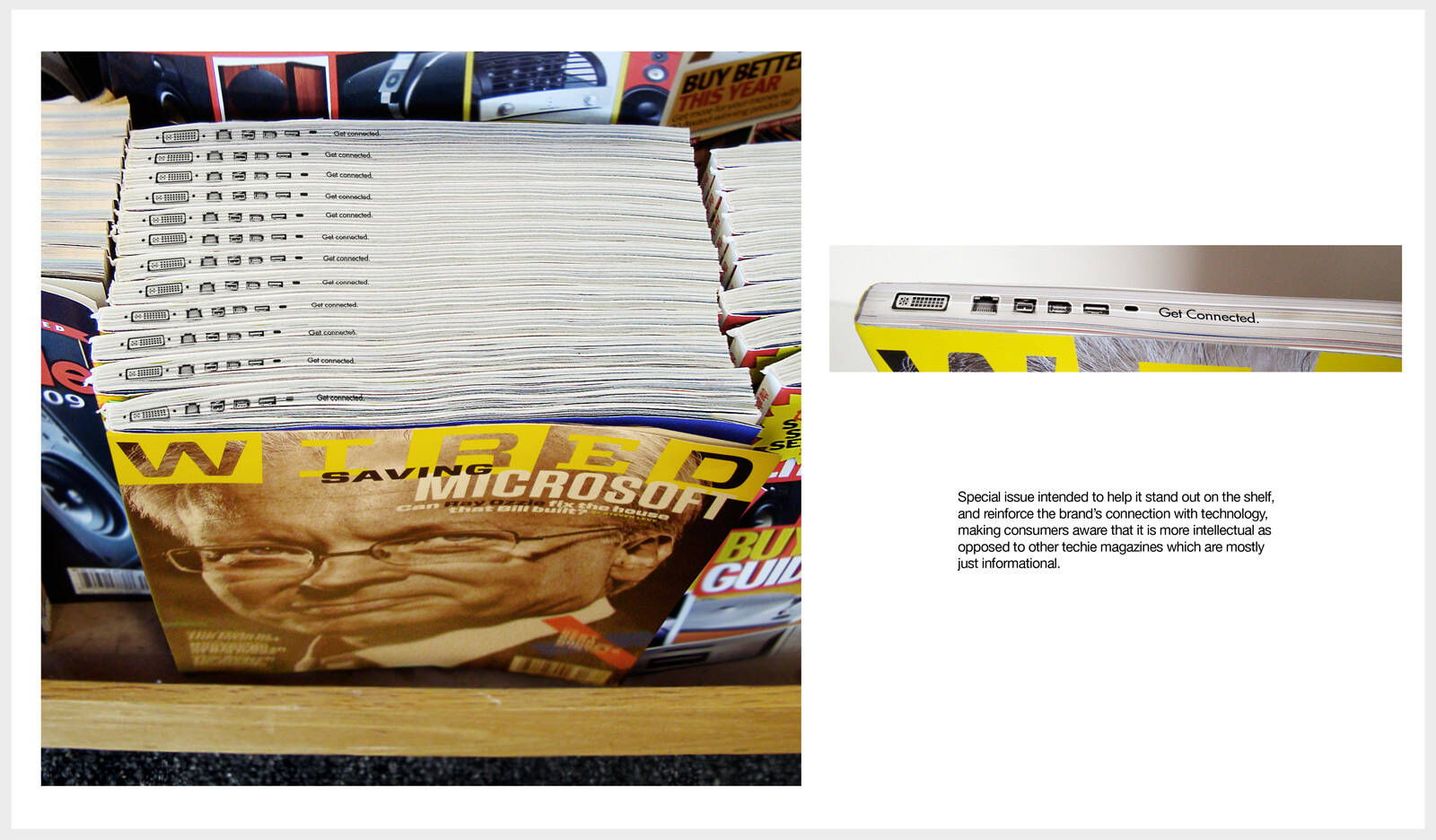 This professional campaign titled 'Get connected' was published on September 15, 2009. It was created for the brand: Wired, by ad agency: Art Center College of Design. This Static Images medium campaign is related to the Media industry and contains 1 media asset. It was submitted about 16 years ago.