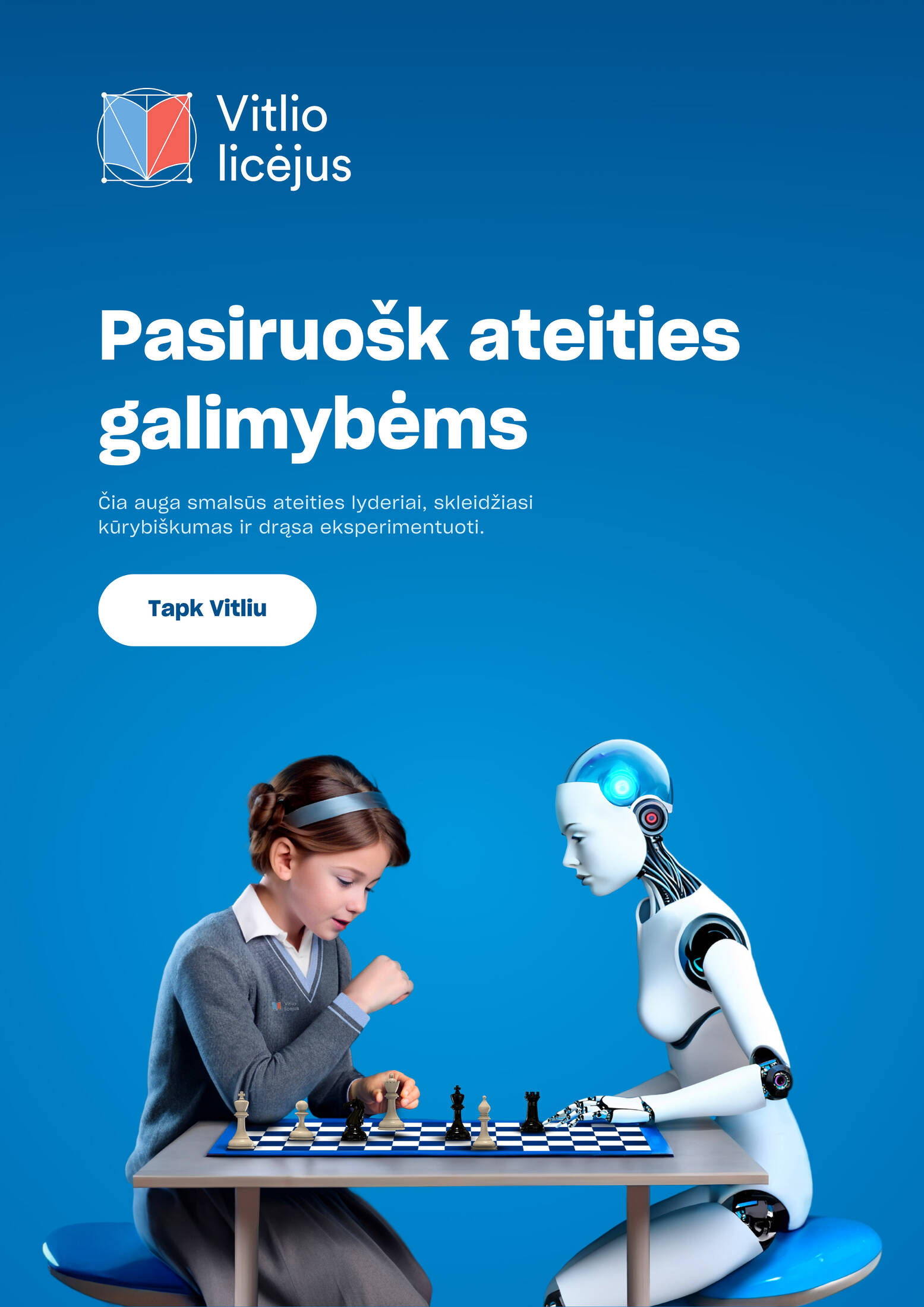 „Vitlio licėjus“ is a cutting-edge educational institution that embraces the forefront of technology to provide a robust education in engineering, technology, and the arts. It's a nurturing environment that fosters curiosity, nurtures creativity, and encourages fearless experimentation. Campaign goal was to raise awareness about the school's distinctiveness and address the pressing topics of AI and robotics in today's world.