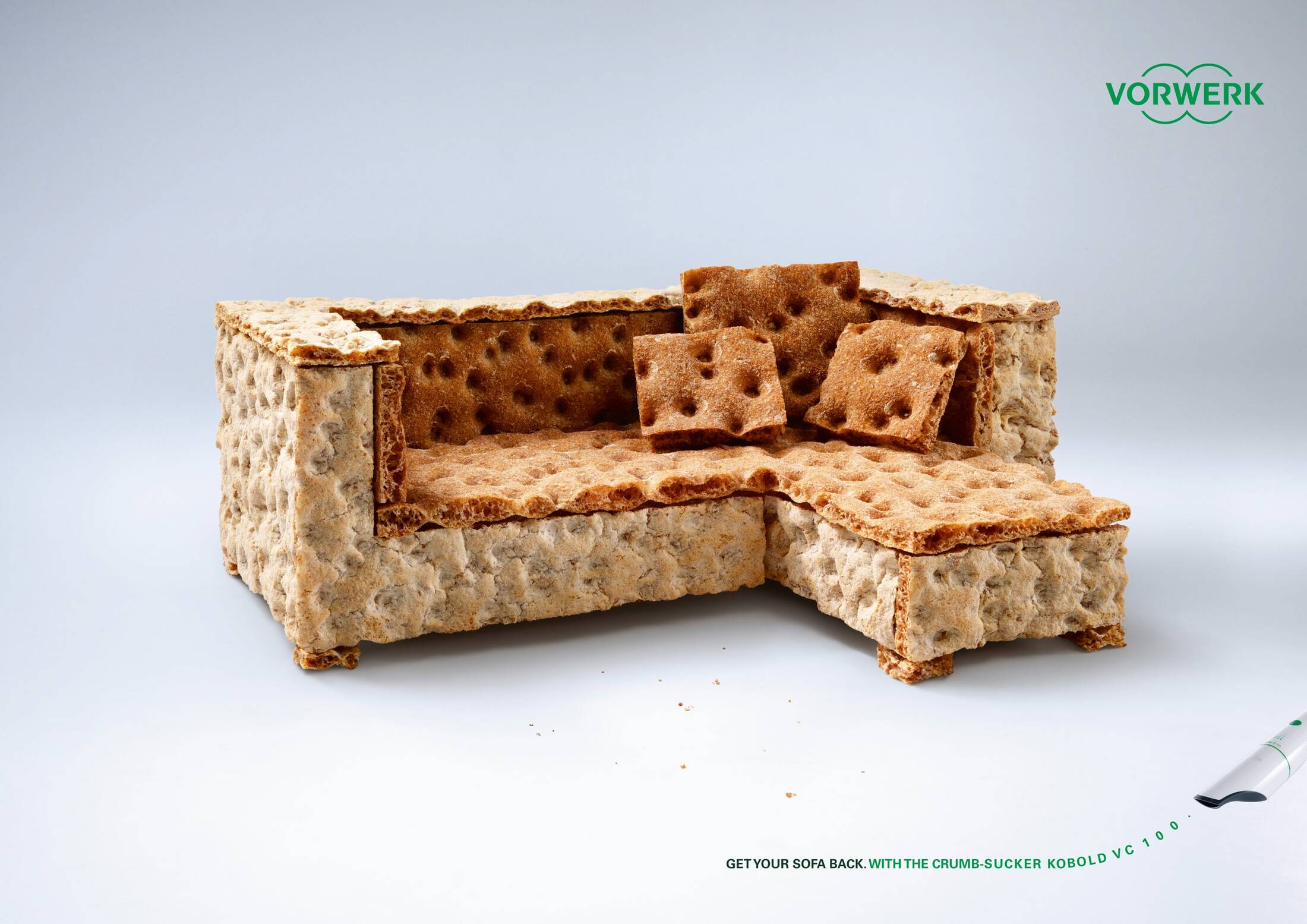 This professional campaign titled 'Get your sofa back' was published in Germany in December, 2013. It was created for the brand: Vorwerk, by ad agency: Kolle Rebbe. This Print medium campaign is related to the Electronics, Technology industry and contains 3 media assets. It was submitted over 11 years ago.