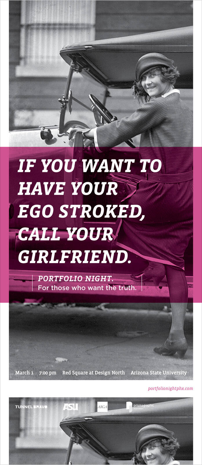 This professional campaign titled 'Girlfriend, Grandma, Mom' was published in United States in February, 2012. It was created for the brand: Portfolio Night, by ad agency: TunnelBravo. This Print medium campaign is related to the Professional Services industry and contains 3 media assets. It was submitted almost 14 years ago.