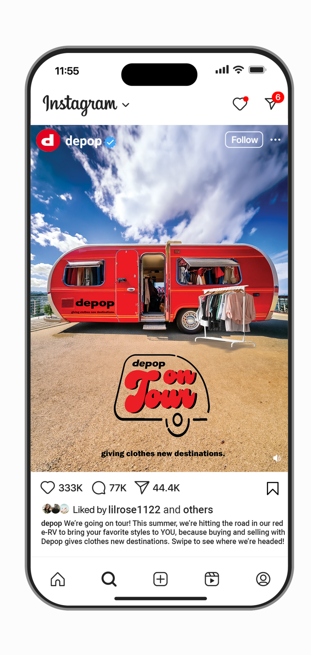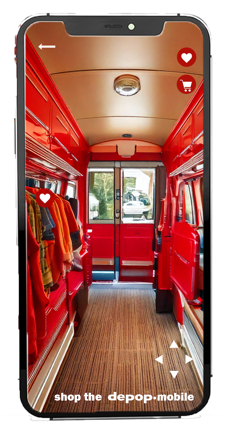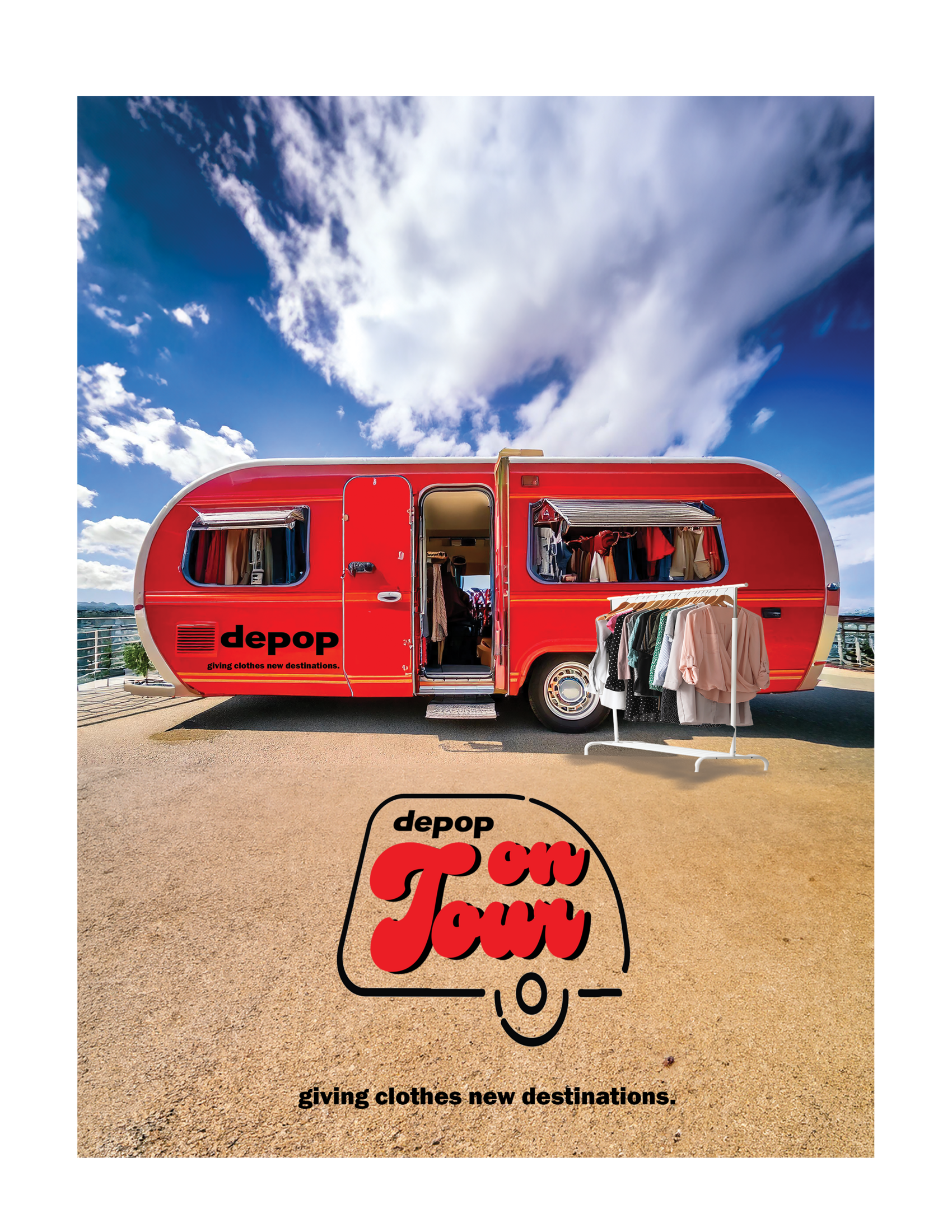 The Depop-Mobile; a traveling red RV and mobile pop-up shop where Depop shoppers can buy and sell trendy secondhand clothing, accessories and handicrafts.