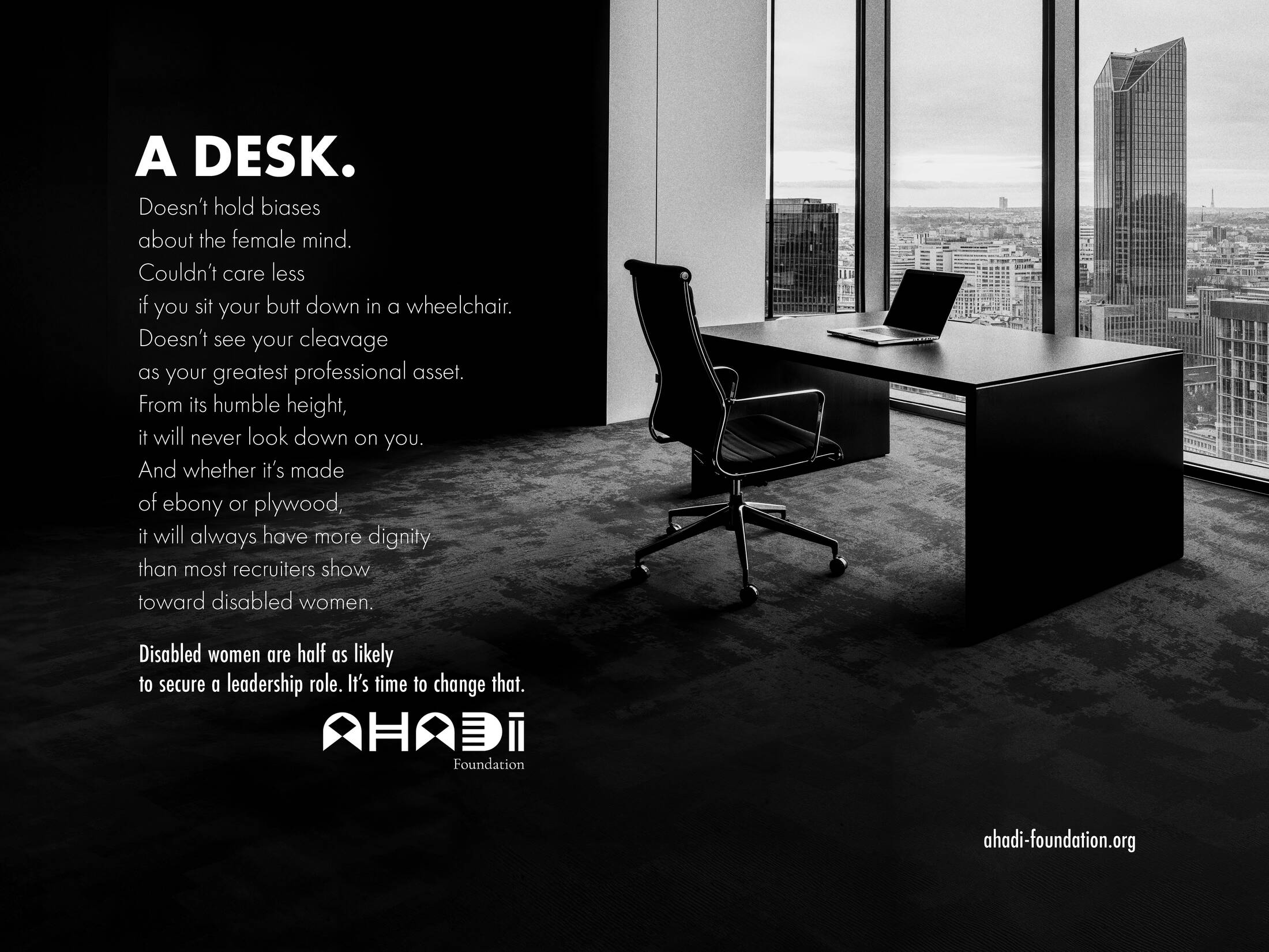 For its first-ever awareness campaign, the Ahadi Foundation has teamed up with creative agency La Chose to shed light on an urgent yet often overlooked issue : the invisibility of injustices and discrimination faced by women with disabilities.
