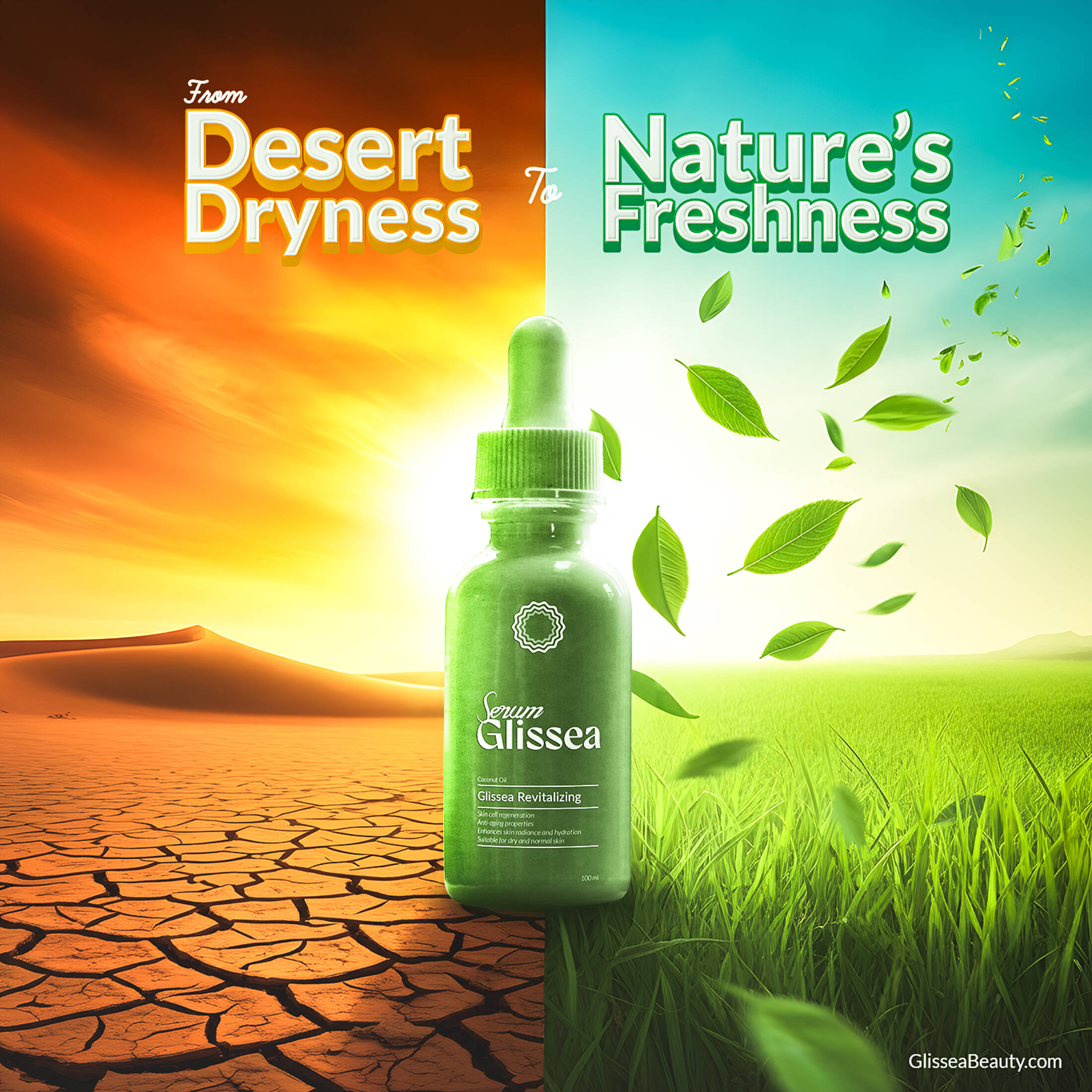 Glissea's latest ad campaign brings the essence of nature and modern skincare innovation to life. Each visual captures the brand’s dedication to nourishing and revitalizing the skin, using only the finest natural ingredients. From combating the harshest elements like desert dryness to promoting deep hydration and glow, Glissea redefines what it means to achieve radiant, healthy skin.
