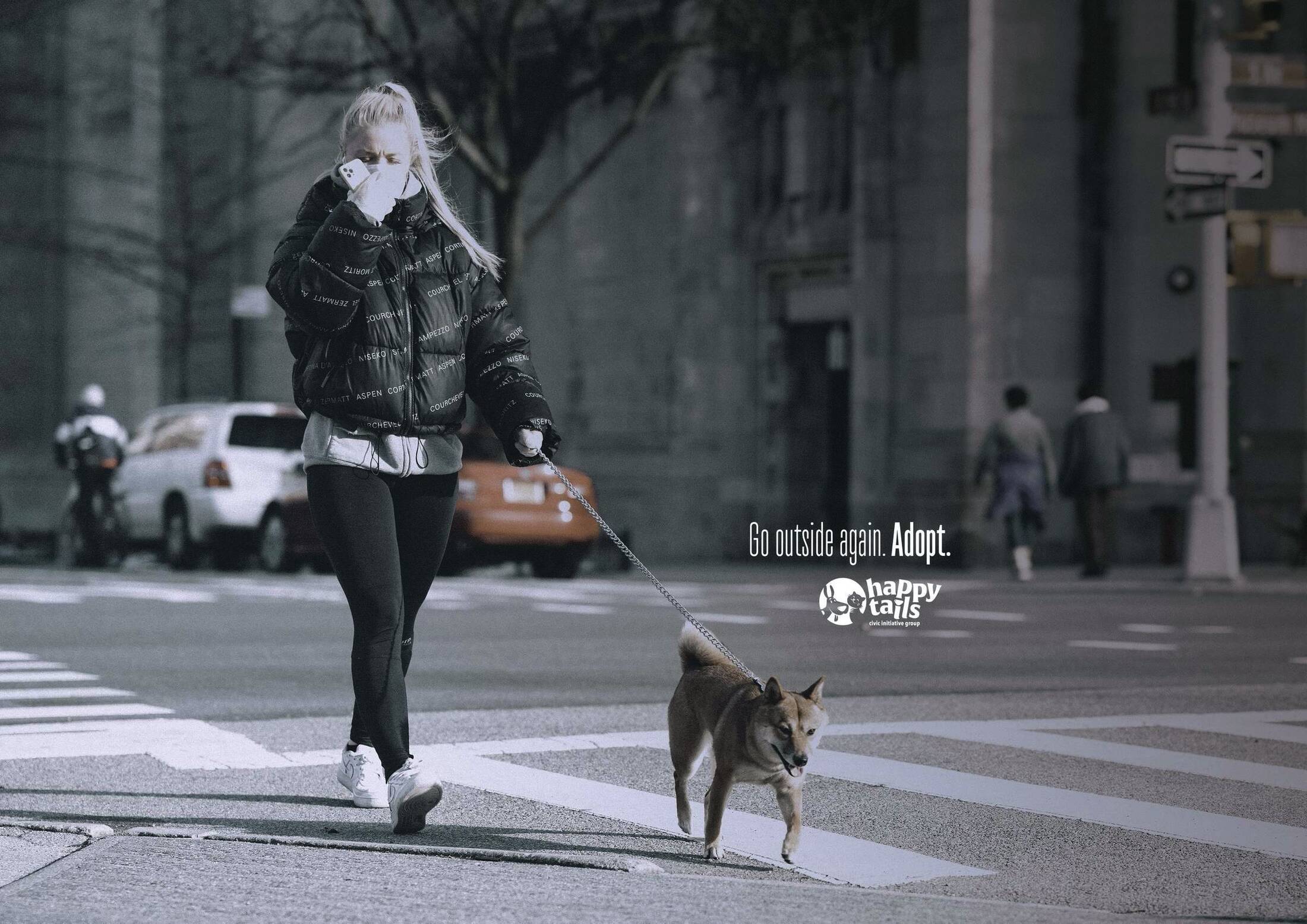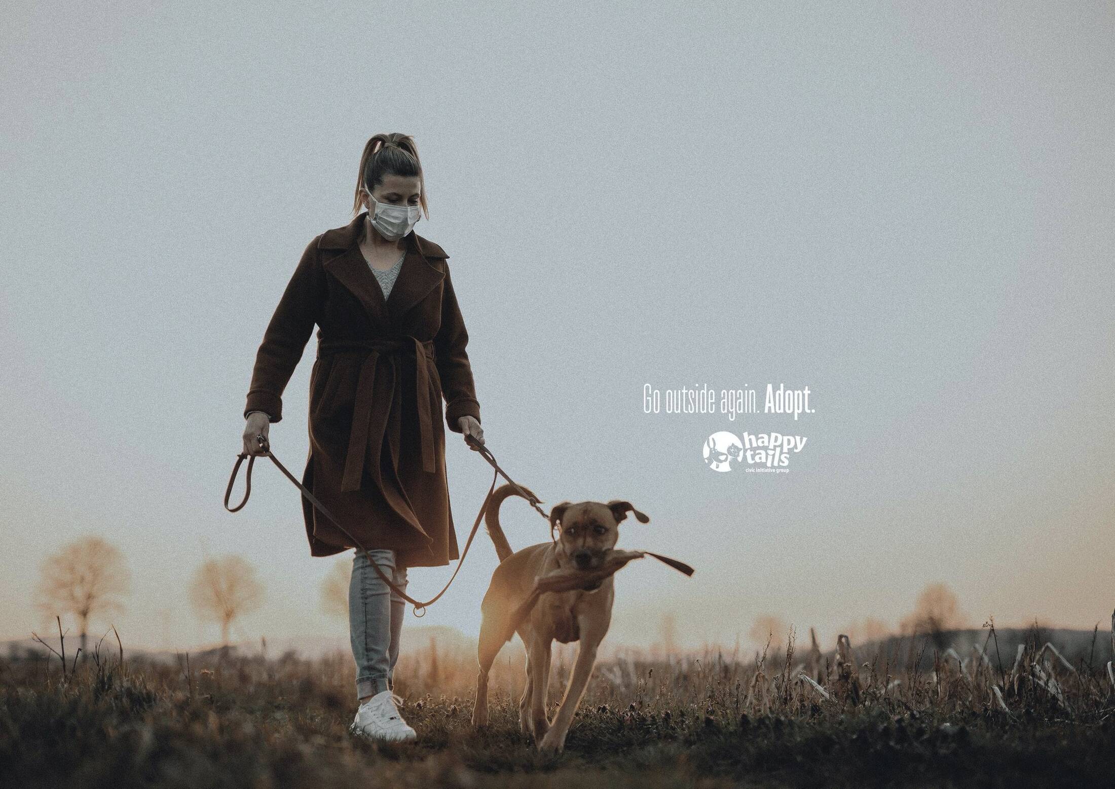 With the lockdown prompted by the Covid-19 pandemics, one of the very few situations where people are allowed to go outside their homes was to walk their dogs. To raise awareness on dog adoptions in a time when the topic is at the bottom of the priorities list, HappyTails civic initiative group launched a campaign portraying people walking their dogs during the pandemic. Besides having a companion that will improve the overall quality of life, adopting a dog or cat will give you an extra reason to leave your house and be more active. To encourage responsible adoptions, the volunteers at HappyTails are thoroughly screening future owners and are performing personality matchmaking tests to ensure there's a perfect fit between each animal and those who intend to adopt them.