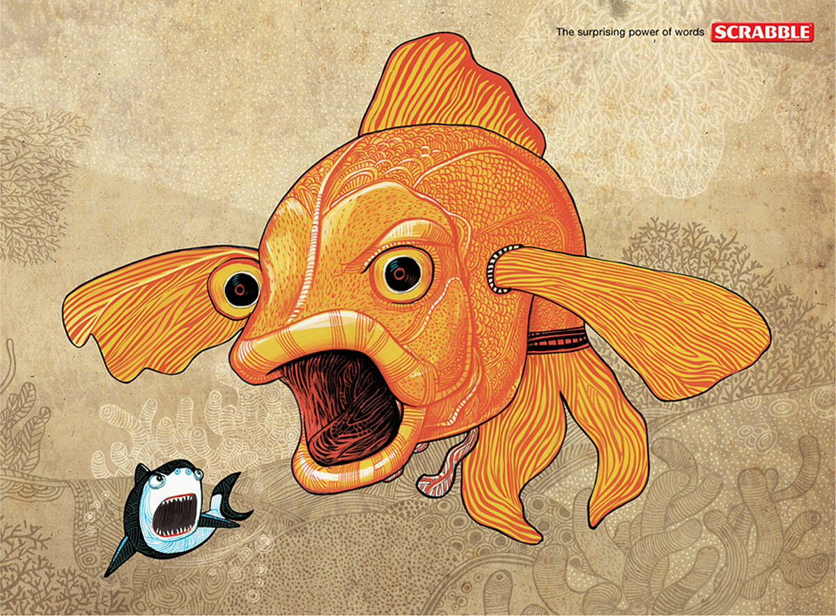 This professional campaign titled 'Gold fish, Mouse, Squirrel' was published in India in August, 2010. It was created for the brand: Scrabble, by ad agency: Ogilvy. This Print medium campaign is related to the Gaming industry and contains 3 media assets. It was submitted over 15 years ago.