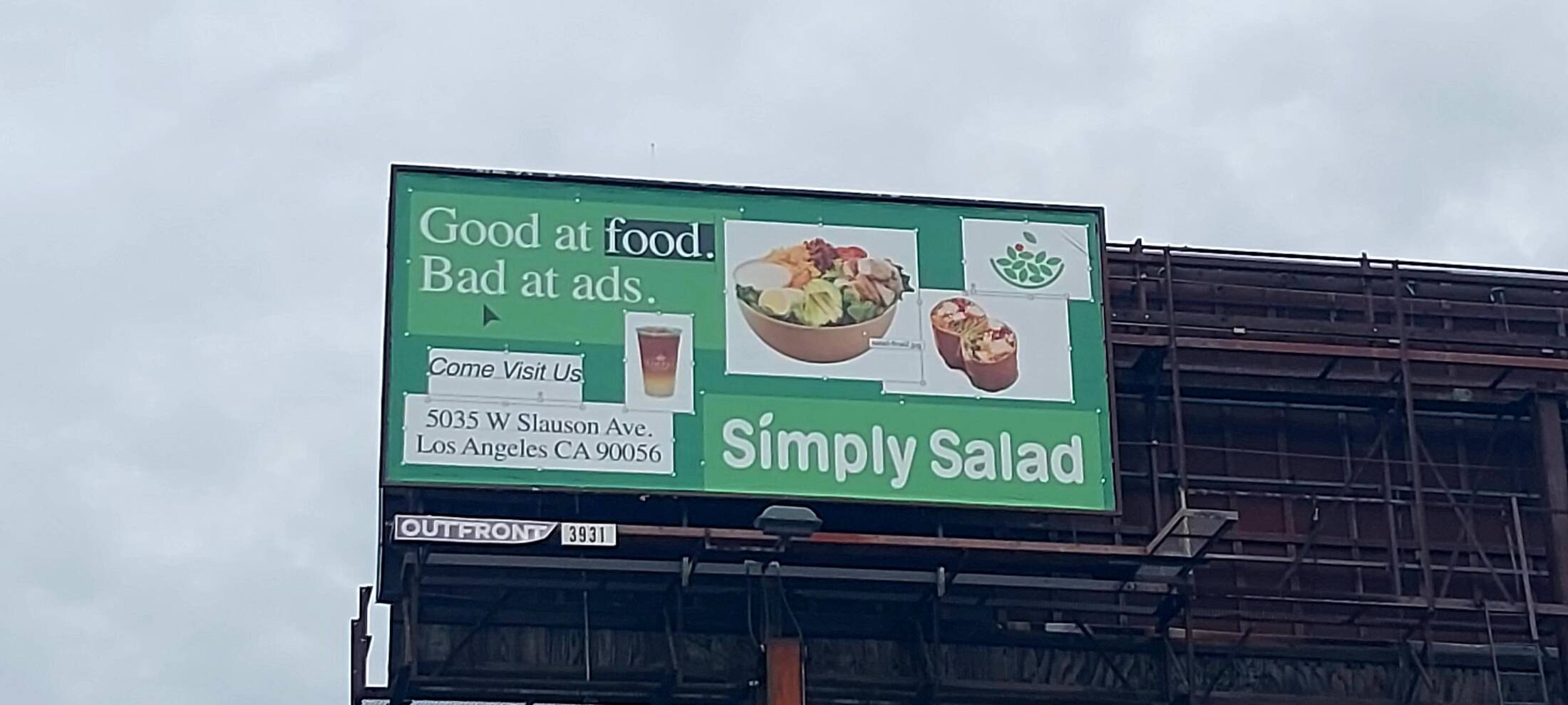 This professional campaign titled 'Good at Food. Bad at Ads.' was published in United States in December, 2023. It was created for the brand: Simply Salad, by ad agency: DANIEL The Agency. This OOH Outdoor medium campaign is related to the Food industry and contains 2 media assets. It was submitted almost 2 years ago.