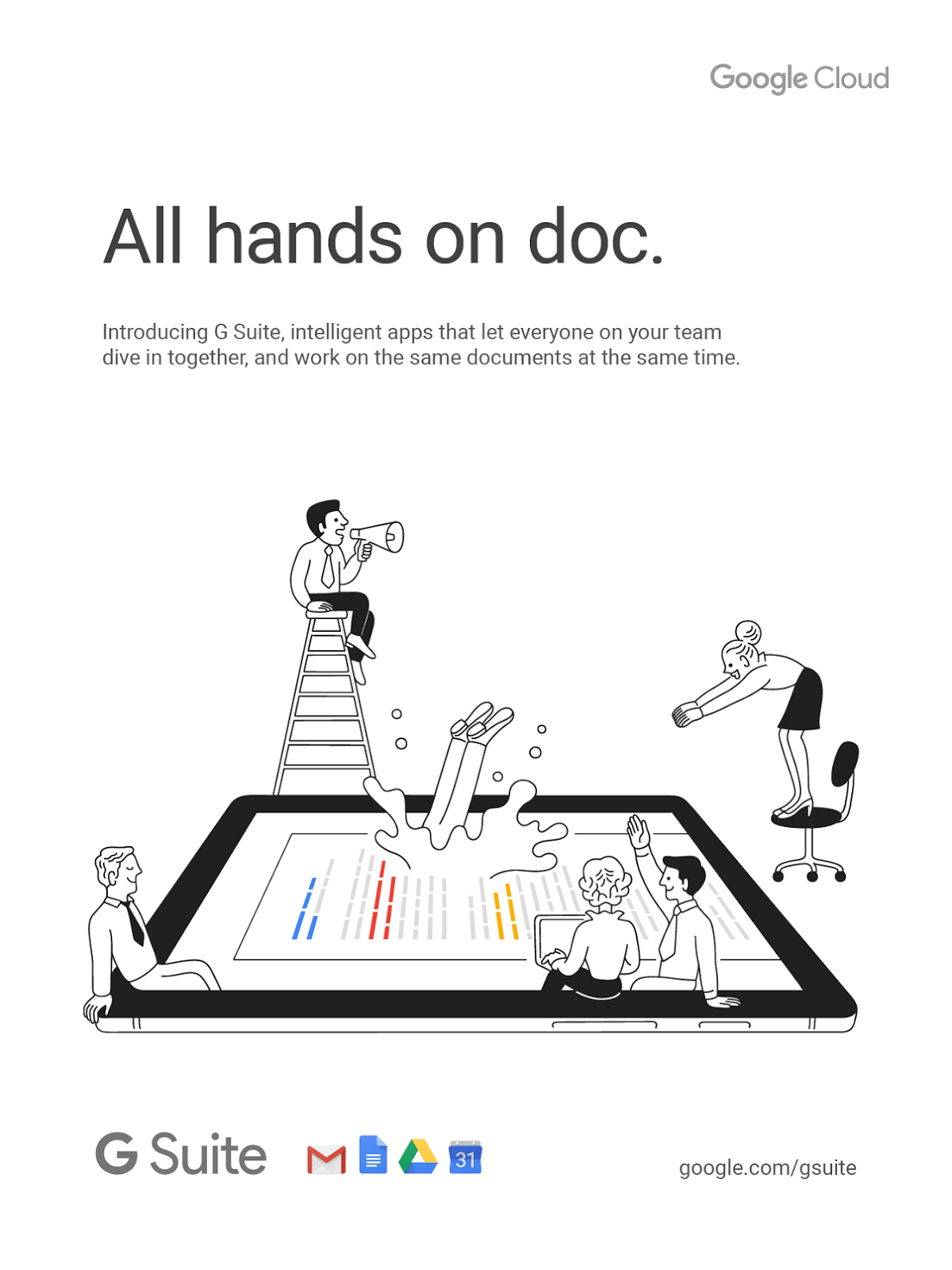 This professional campaign titled 'Good business travels fast, All hand on doc, All together...' was published in United States in September, 2016. It was created for the brand: G Suite, by ad agency: Anomaly. This OOH Outdoor medium campaign is related to the Electronics, Technology industry and contains 9 media assets. It was submitted about 9 years ago.