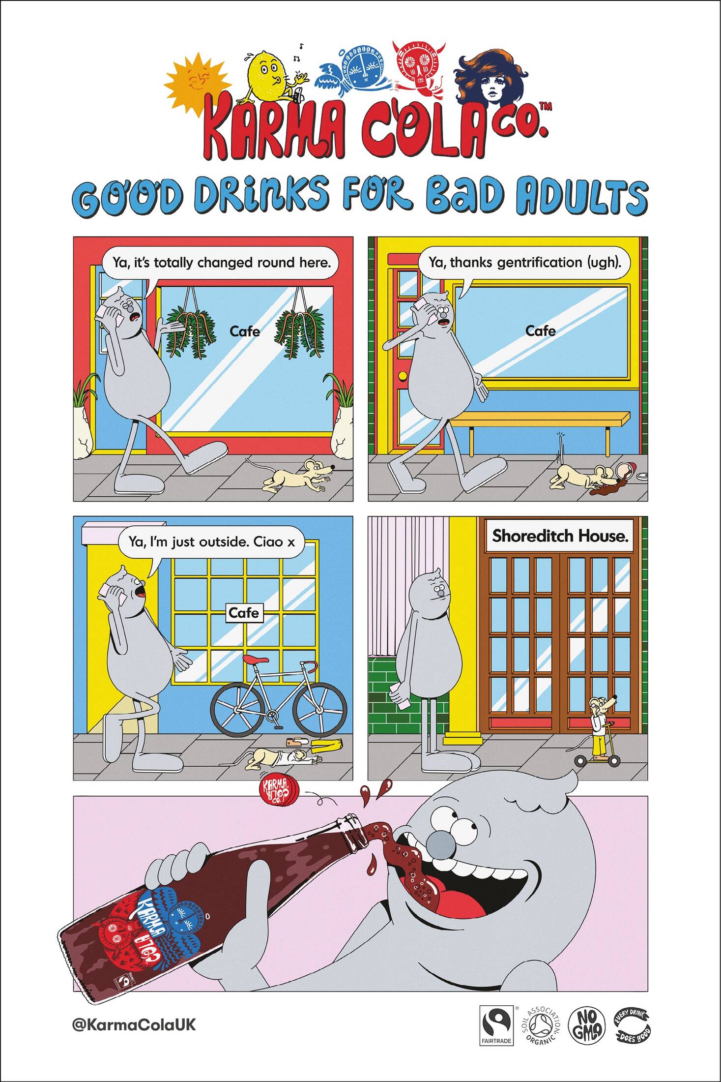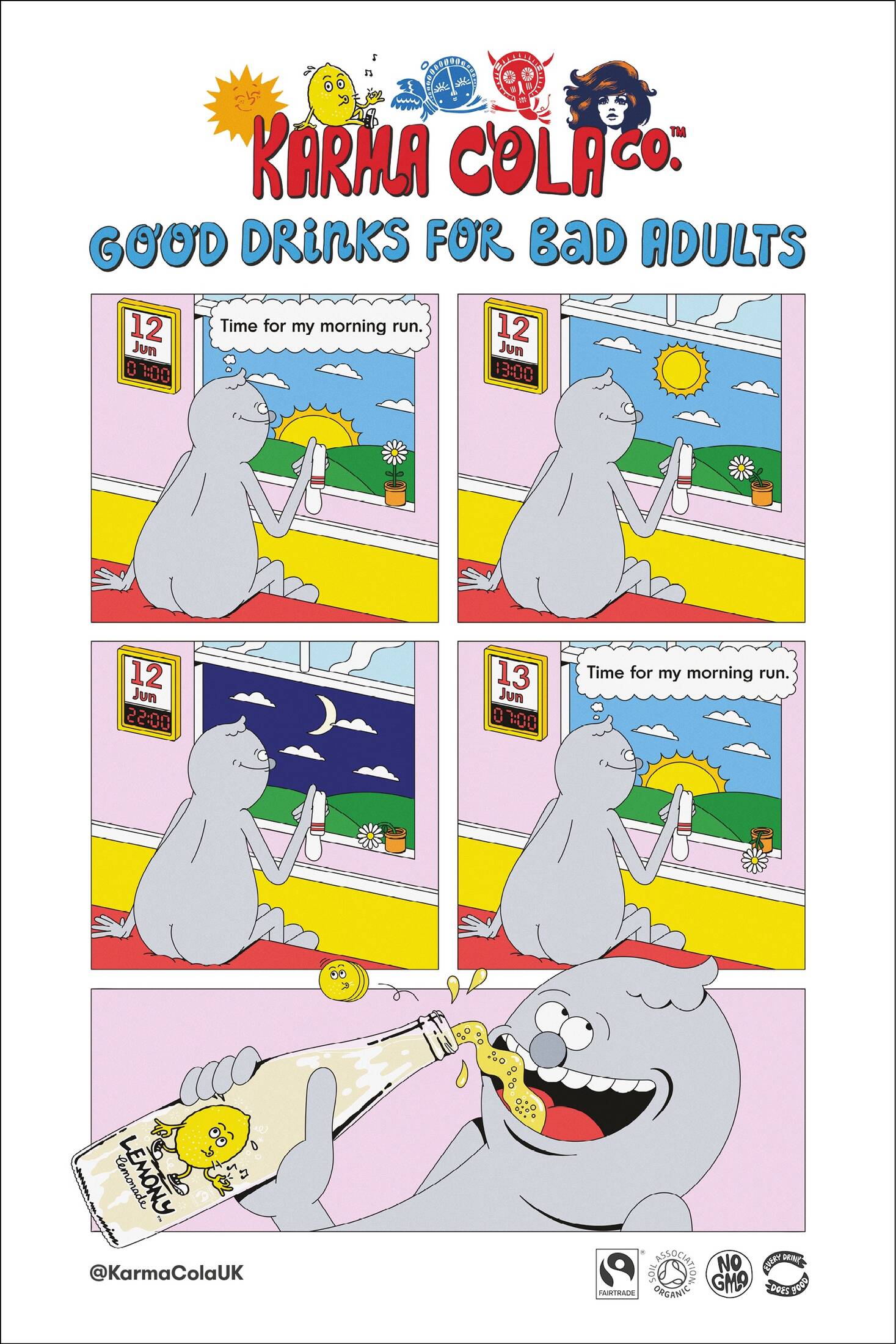A new campaign from Karma Cola reminds people that despite our ethical aspirations, and best intentions, real life often gets in the way and makes it difficult for us to be as good as we’d like to be - in steps the Karma Cola company to re-balance the karma. Every drink the Karma Cola Co. sells does good in the world and are as good for you as fizzy drinks can be.