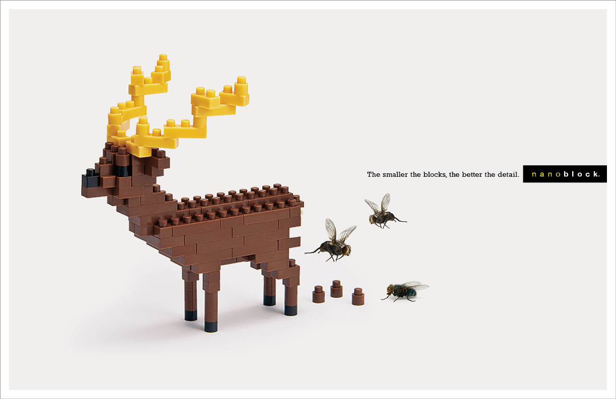 This professional campaign titled 'Gorilla, Dog, Cat, Deer, Worm' was published in United States in June, 2012. It was created for the brand: Nanoblock, by ad agency: Team Detroit. This Print medium campaign is related to the Gaming industry and contains 5 media assets. It was submitted over 13 years ago.