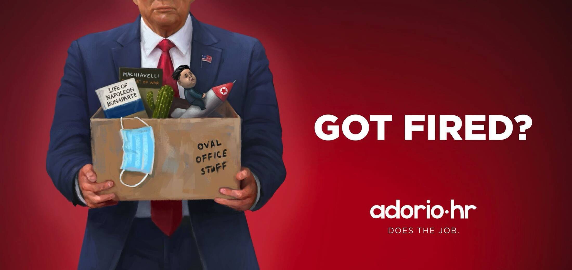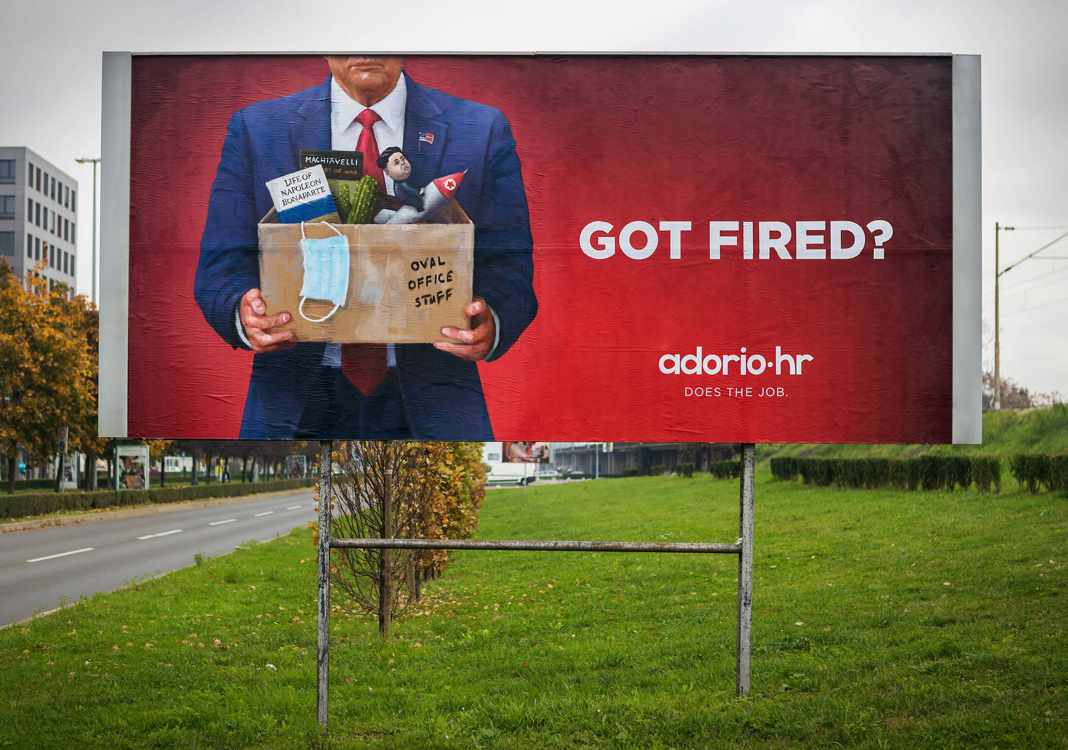 This professional campaign titled 'Got Fired?' was published in Croatia in November, 2020. It was created for the brand: Adorio, by ad agency: Spellcaster. This OOH Outdoor medium campaign is related to the Professional Services industry and contains 2 media assets. It was submitted about 5 years ago by Creative director // Brand strategist // Innovation consultant: Tonci Klaric of UNFOLD.