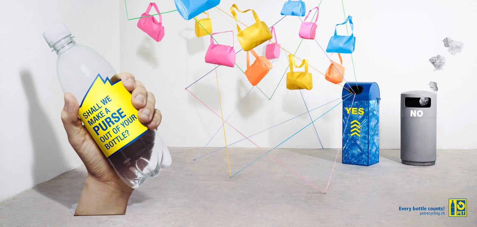 This professional campaign titled 'Grass, Purse, Jacket, Bottle' was published in Switzerland in June, 2011. It was created for the brand: PET Recycling, by ad agency: Leo Burnett. This OOH Outdoor medium campaign is related to the Public Interest industry and contains 4 media assets. It was submitted over 14 years ago.
