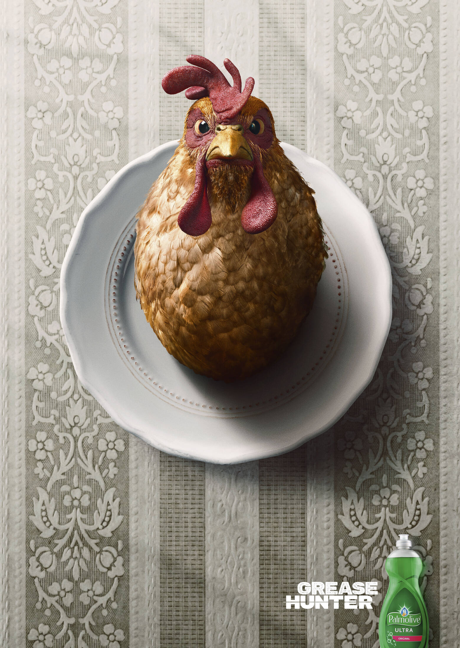 This professional campaign titled 'Grease Hunter - Cow, Chicken, Fish' was published in France in May, 2019. It was created for the brand: Palmolive, by ad agency: Red Fuse. This Print medium campaign is related to the House, Garden industry and contains 3 media assets. It was submitted over 6 years ago.