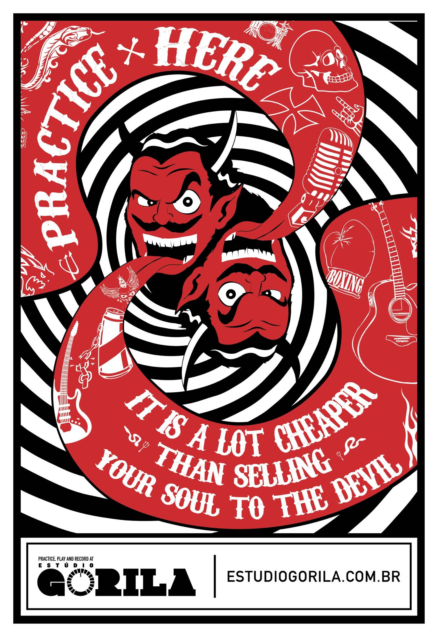 This professional campaign titled 'Groupie, Auto tune, Practice, Devil, Tattoo' was published in Brazil in October, 2015. It was created for the brand: Estudio Gorila, by ad agency: Paim. This OOH Outdoor medium campaign is related to the Professional Services industry and contains 5 media assets. It was submitted almost 10 years ago.